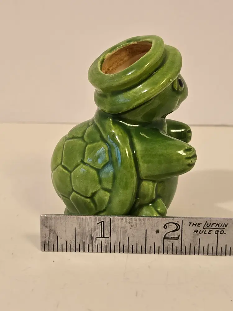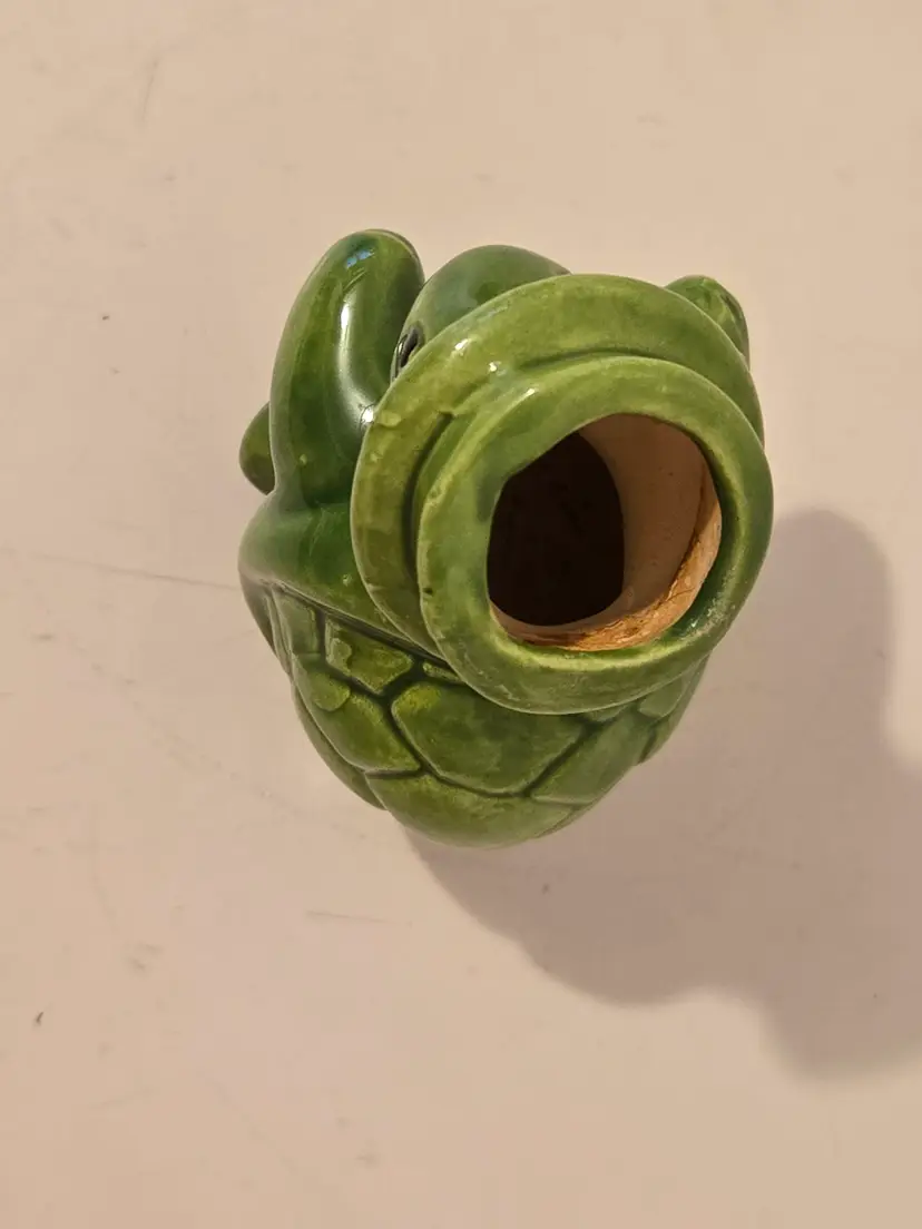 This adorable little guy measures approximately 3×2 inches and is in good used condition. It would make a good small planter, vase or vessel for an air plant.