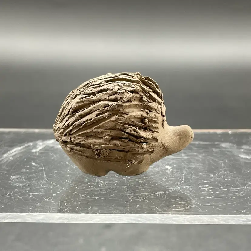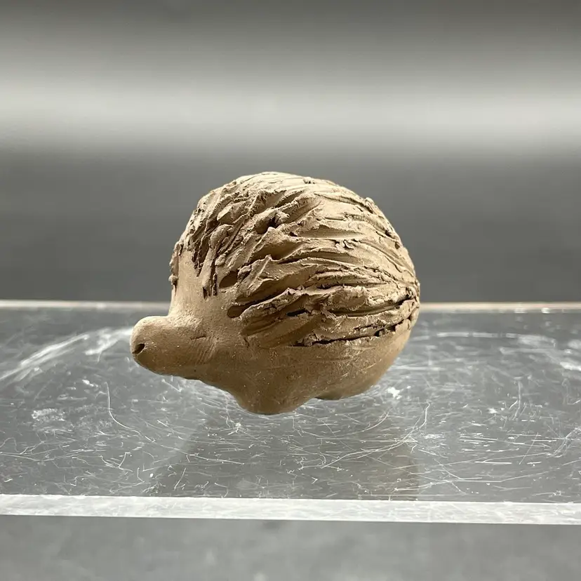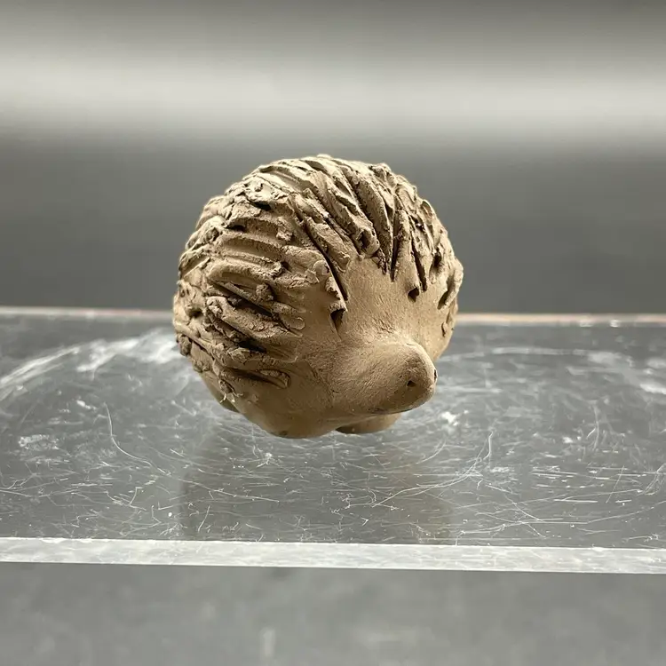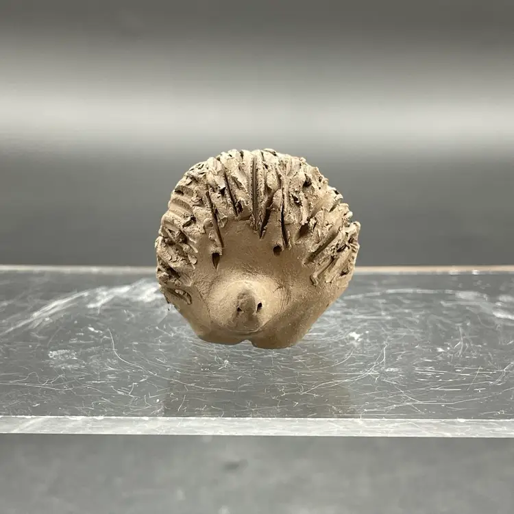 This is a vintage miniature handmade clay pottery hedgehog figurine. Measures approximately 1" tall x 1.5" long. No chips or cracks.