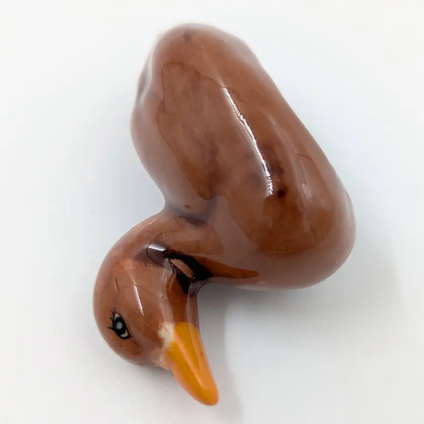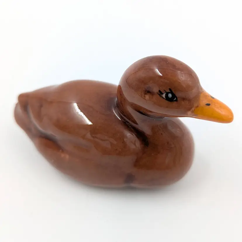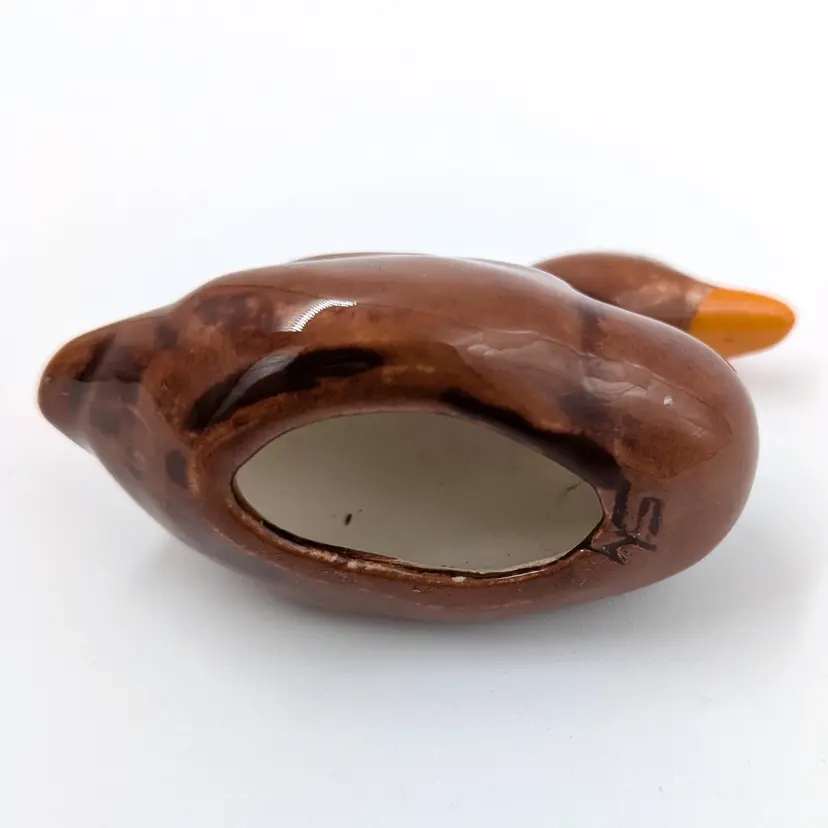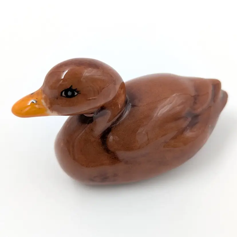Cute little hobbiest painted duck figure. There is a spot where the glaze didn't take, but its under the head and not very visible unless you flip it over. Signed on the bottom.