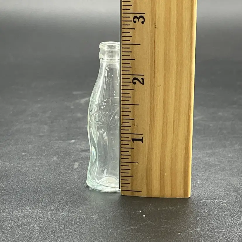 This is a vintage miniature glass Coca-Cola bottle. Measures approximately 2.5" tall. No chips or cracks.