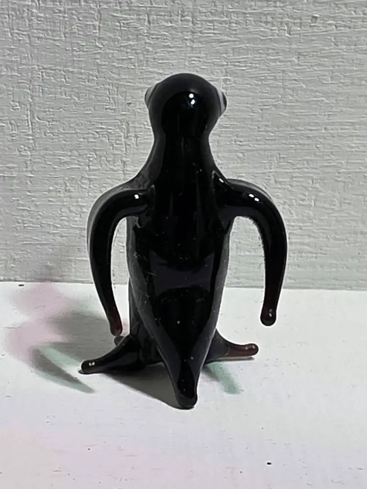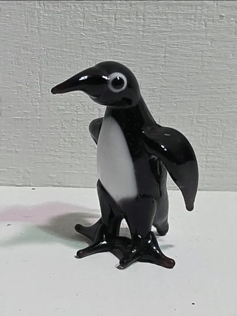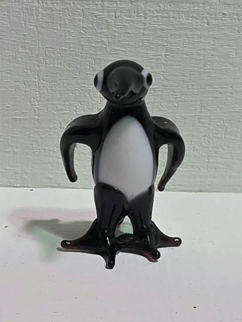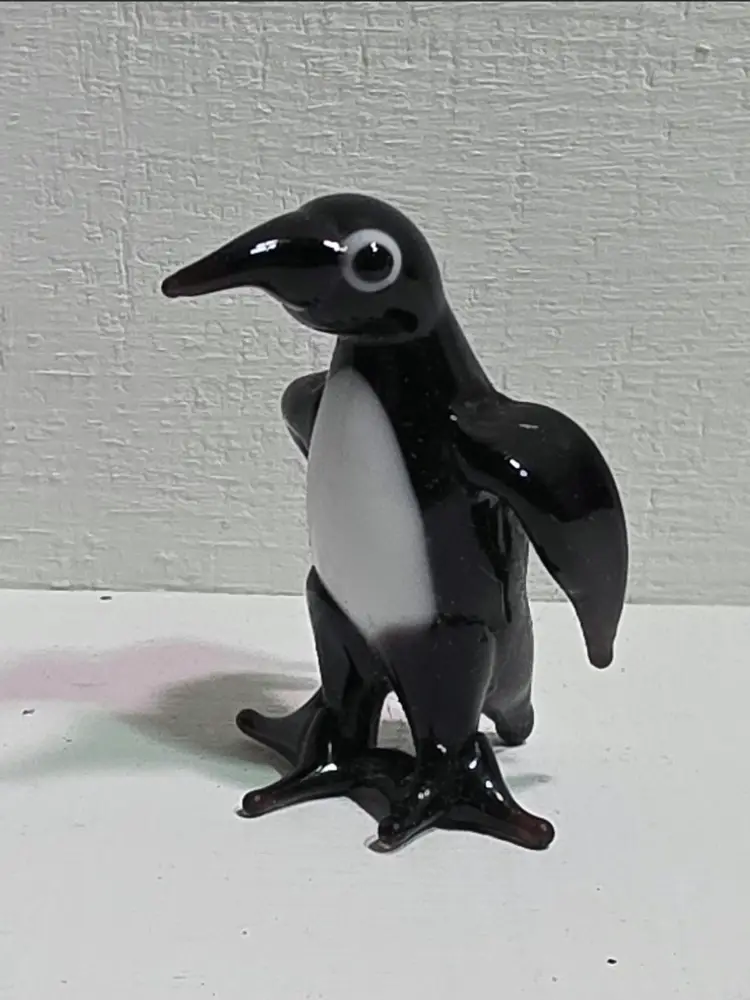 Vintage handmade hand-blown or lampwork penguin figurine with a black and white body and distinctive large eyes.