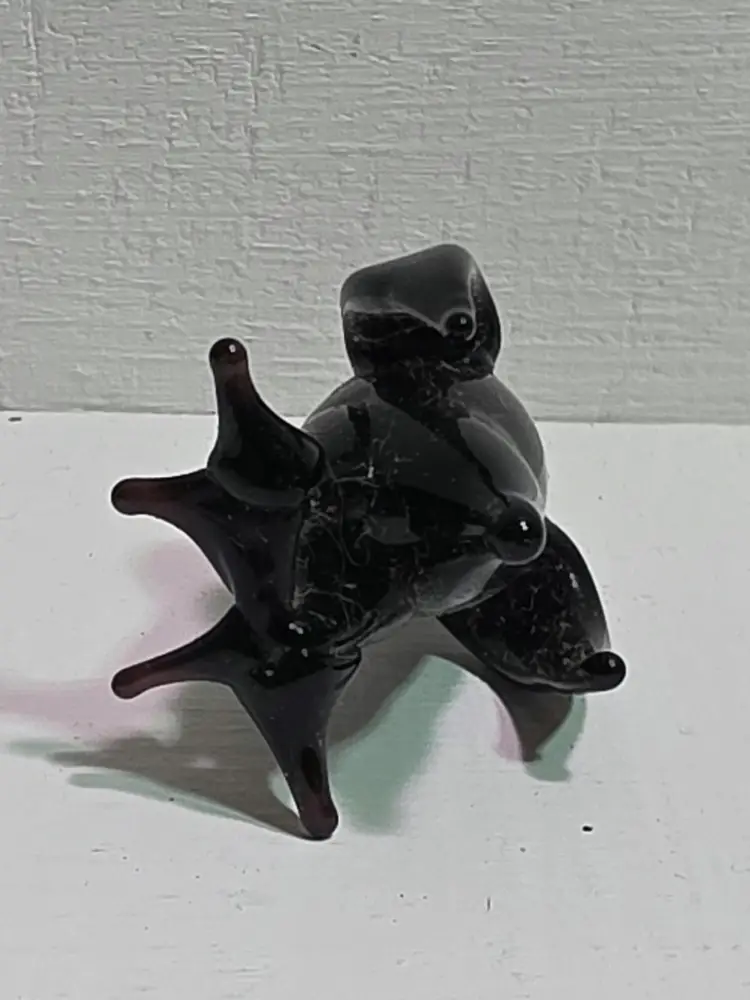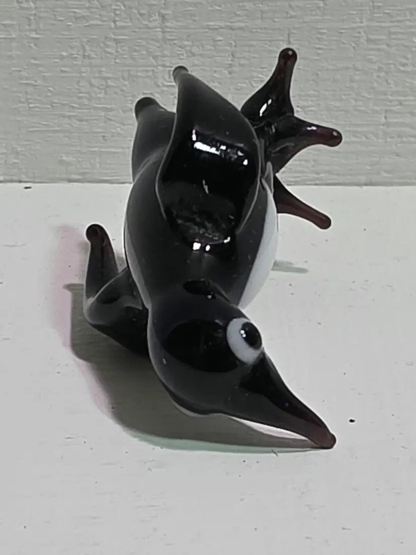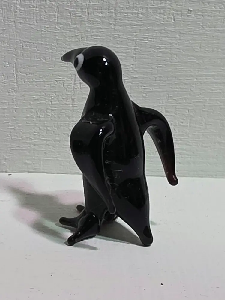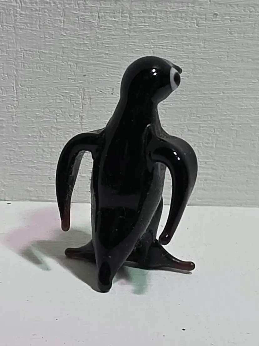 Vintage handmade hand-blown or lampwork penguin figurine with a black and white body and distinctive large eyes.
