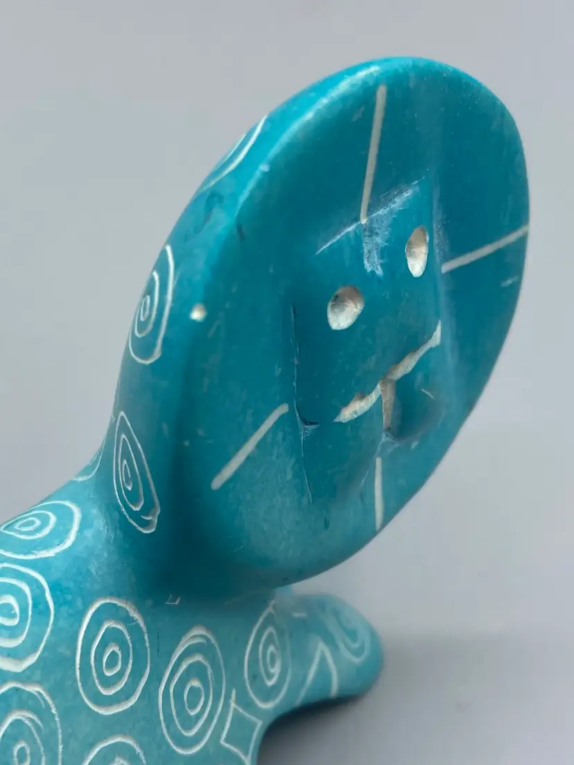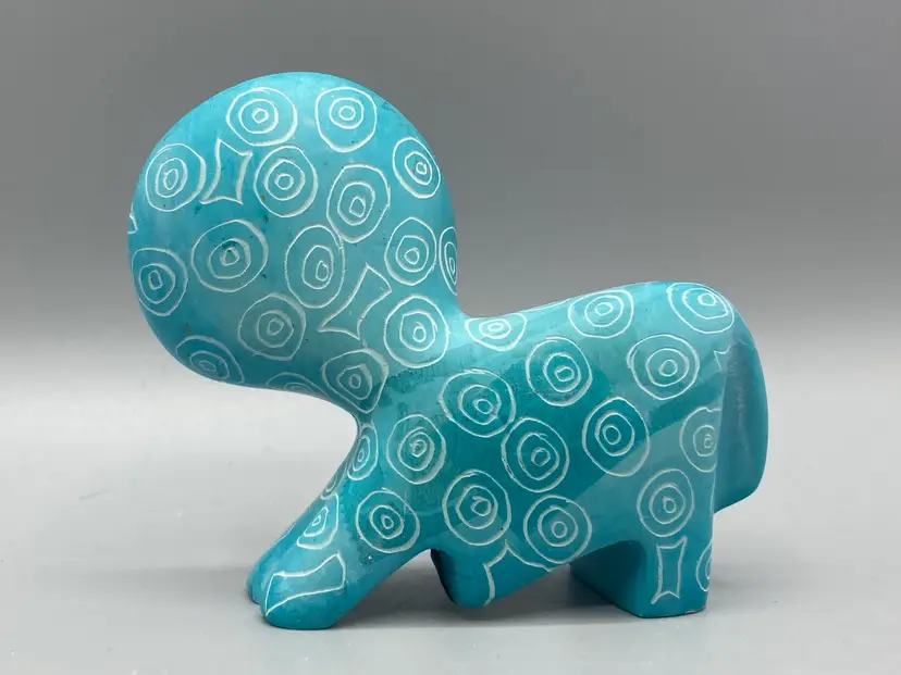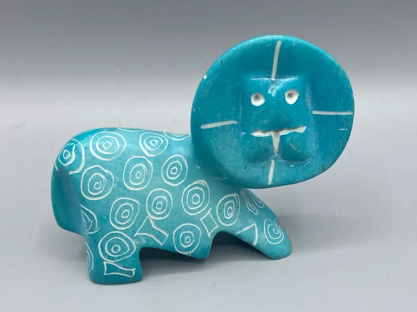 This lion is in good overall condition; there are some flea bites on the bottom of the feet and on one side of the mane. Please see pictures for details. The lion measures approximately 2 1/2" tall x 3" x 1".