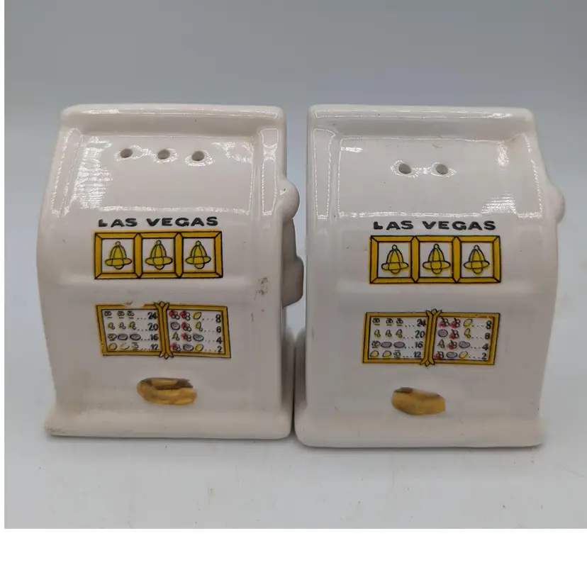 Here is a set of Las Vegas slot machines Salt and Pepper Shakers. Great bar or game room decor