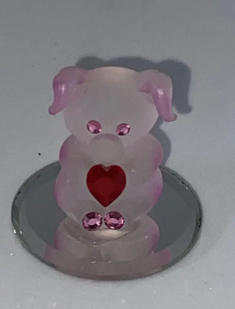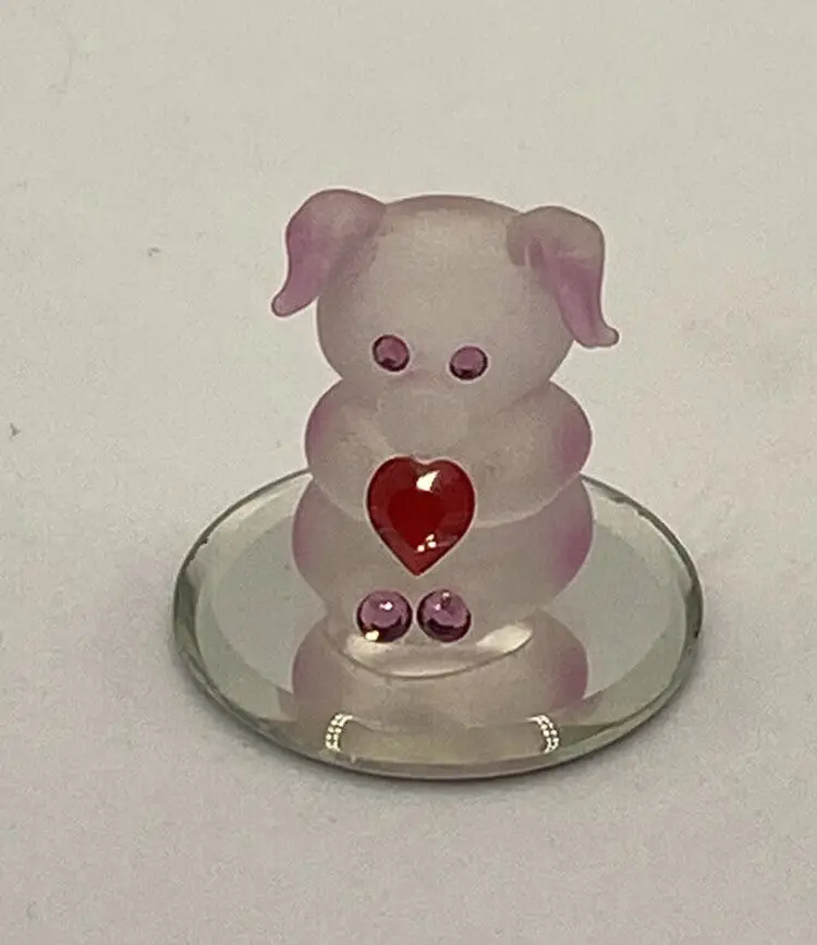Pattern: Hearts Shape: pig Occasion: All Occasions Size: Miniature Signed: No Color: Pink Year Manufactured: 1998 Material: Glass Subject: Pig Brand: Unbranded Type: Miniature Department: Adults Number in Pack: 1 Original/Reproduction: Original Features: Crystals Finish: Mirrored Room: Any Room Handmade: Yes