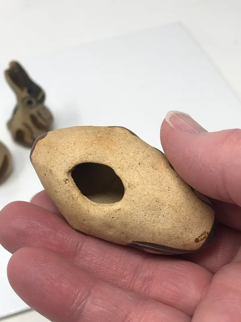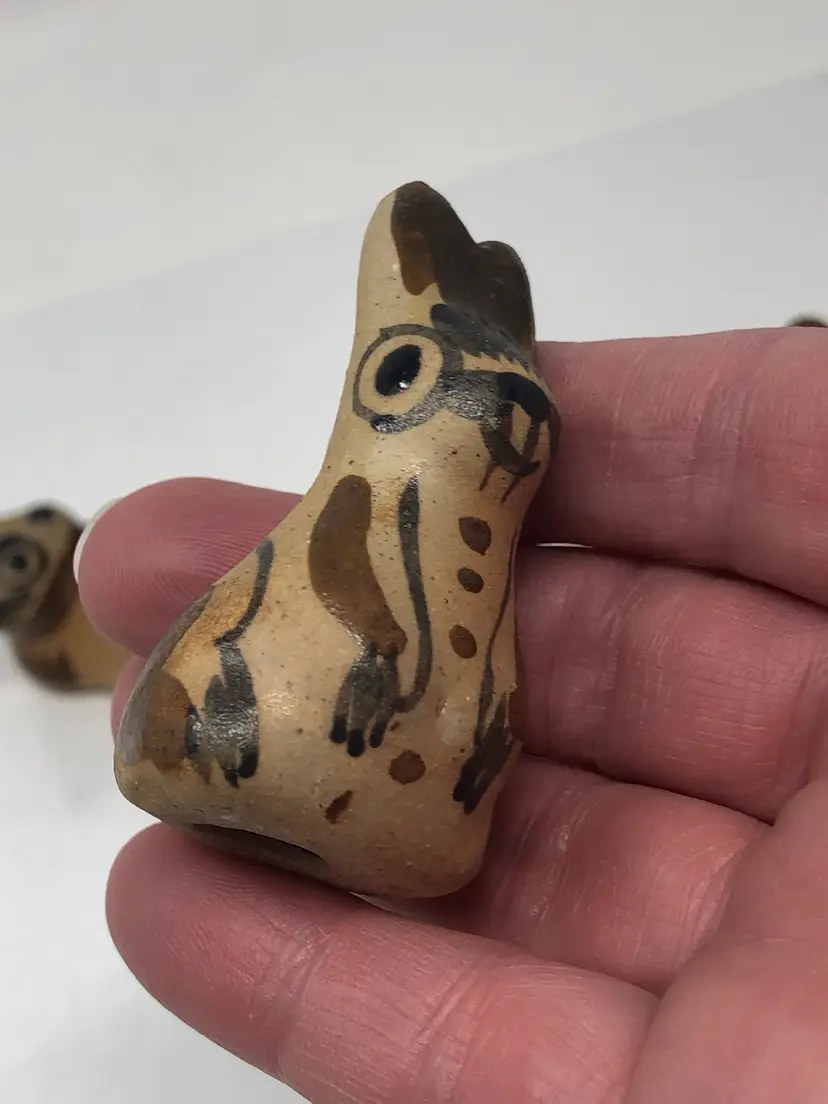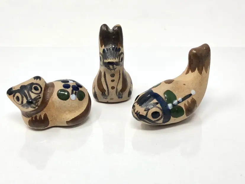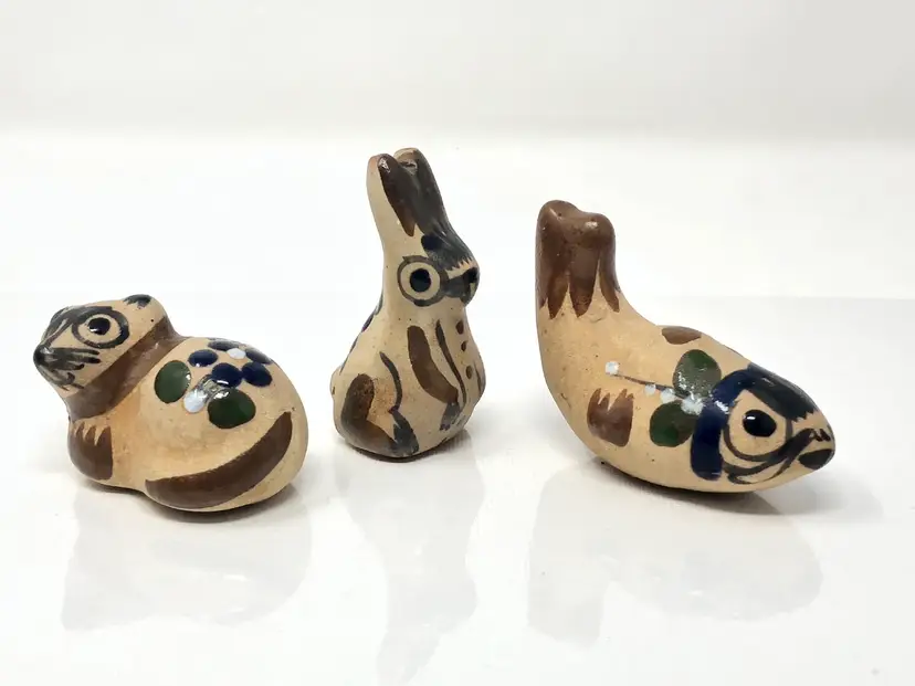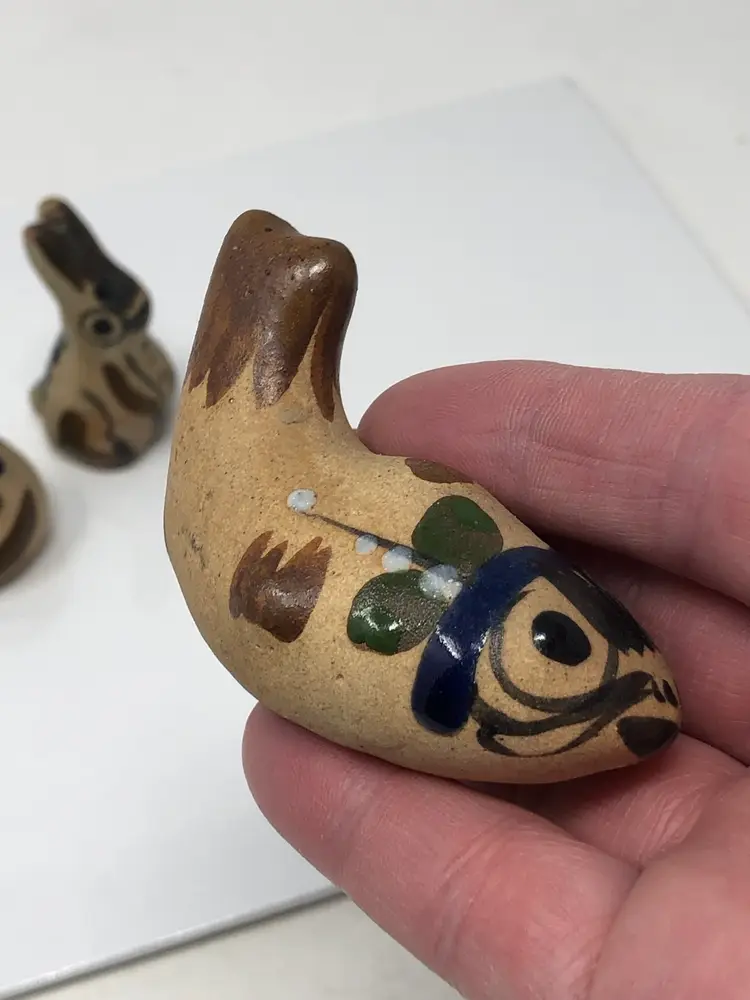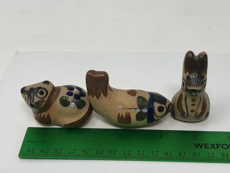 2" pottery animals in Tonala style. Cat, Fish and Rabbit. Unmarked, no chips or cracks
