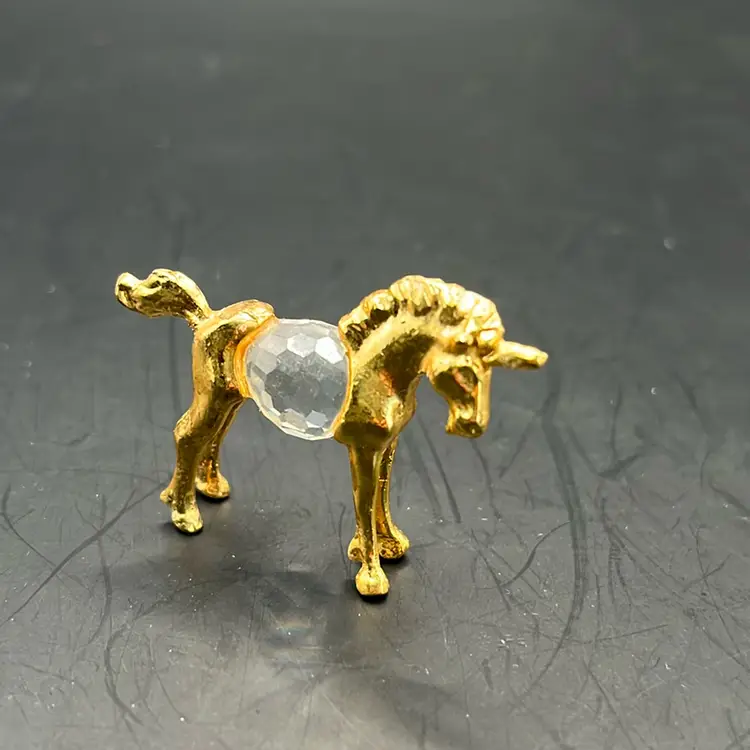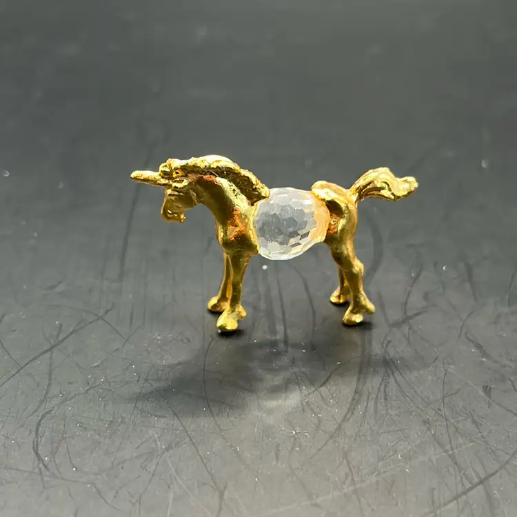 Miniature gold and crystal unicorn. 1 inch tall x 2inches long horn to tail