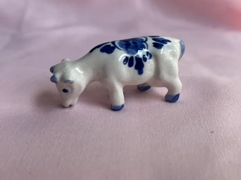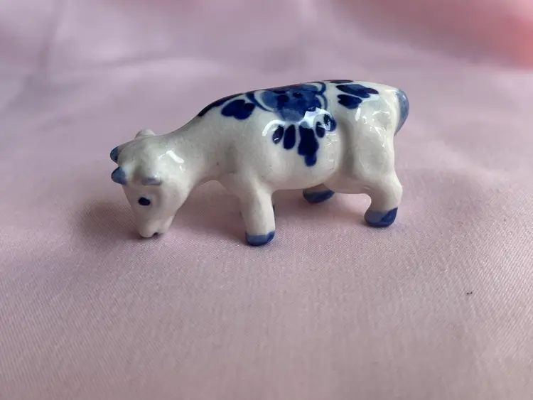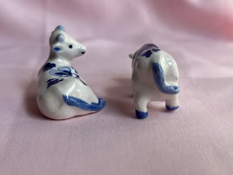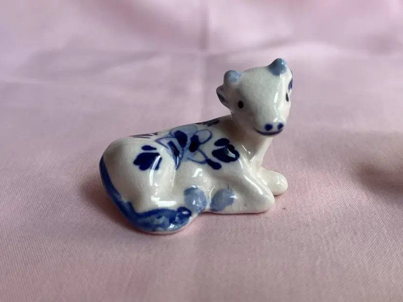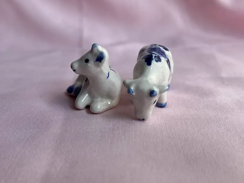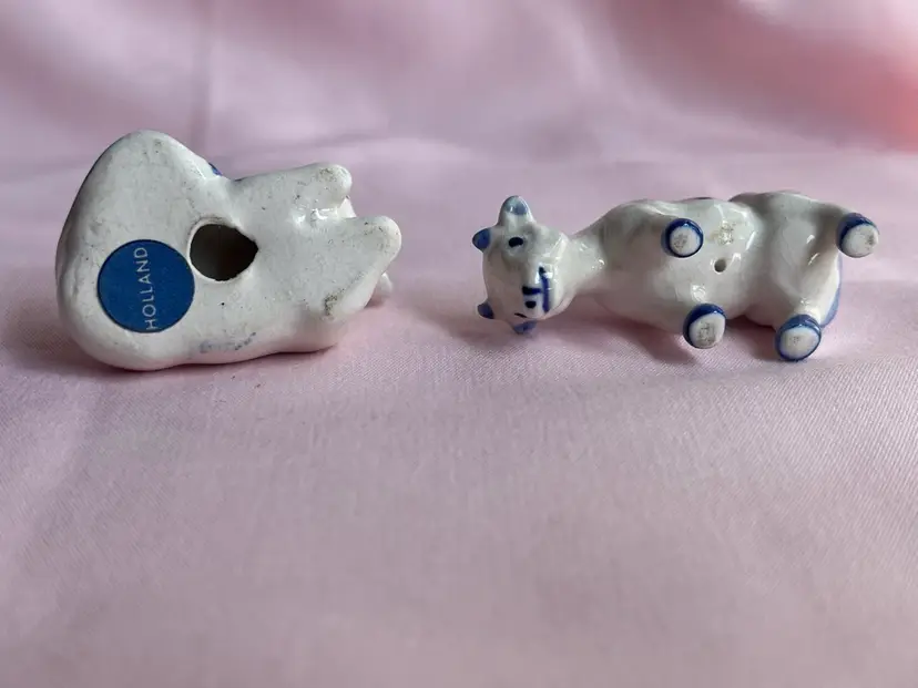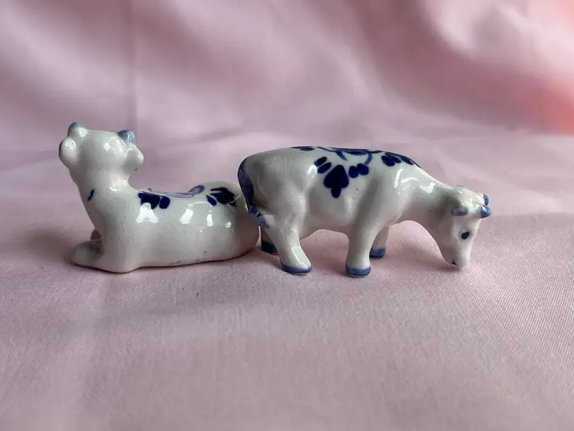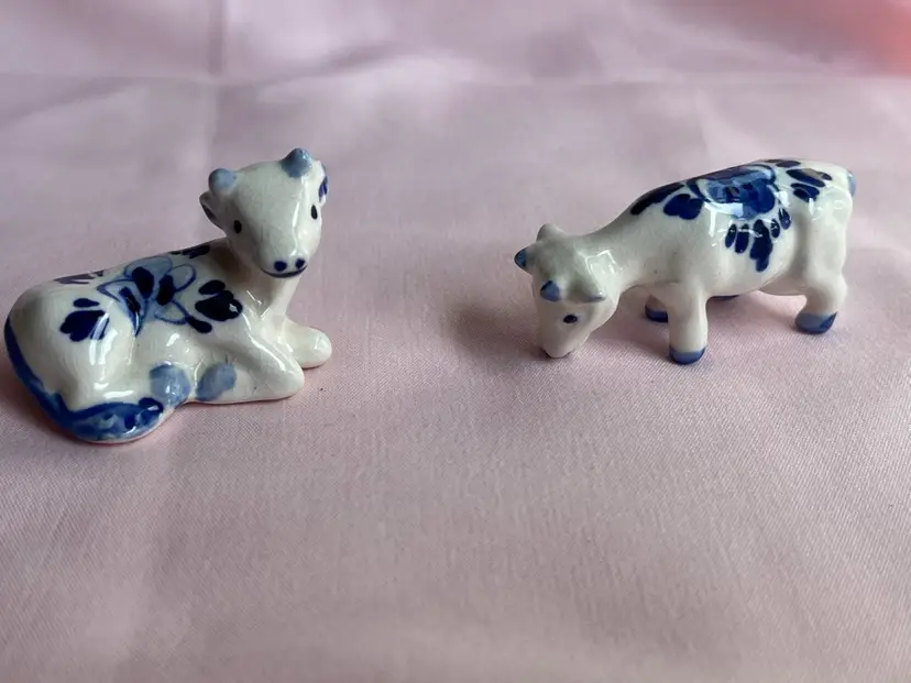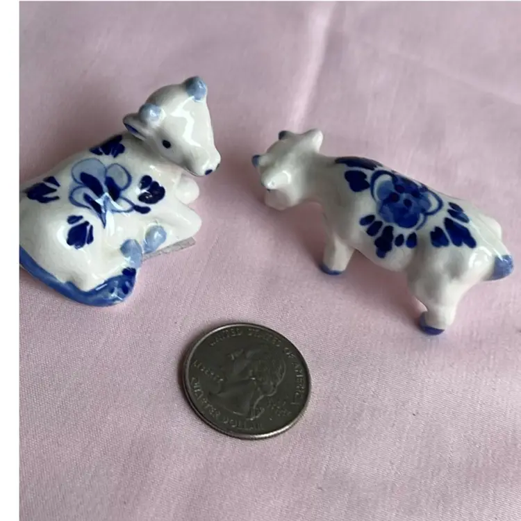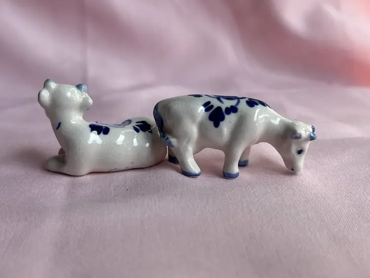 Crazing as shown, quarter for scale Pair of cows Blue and white