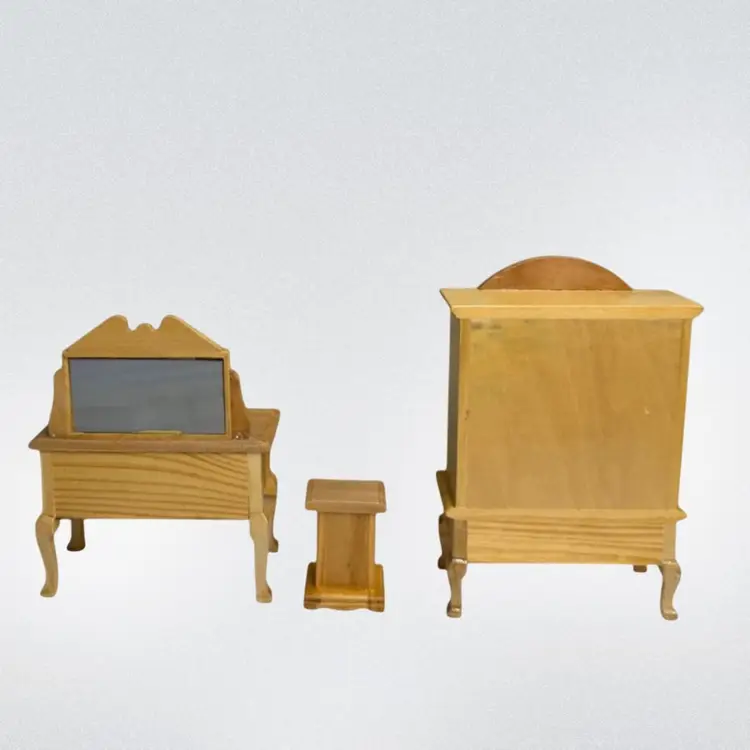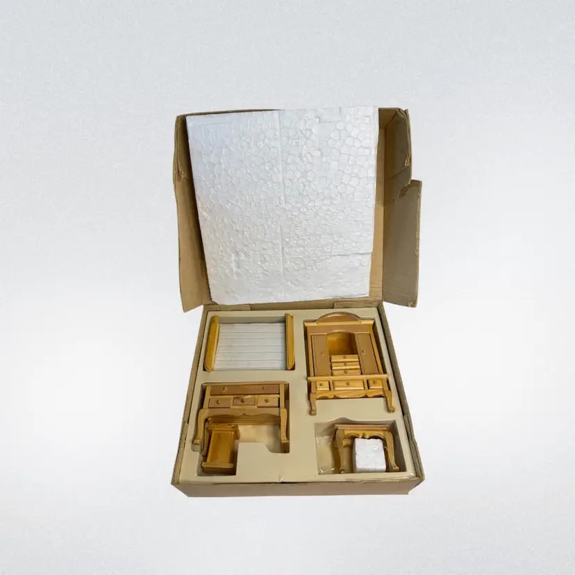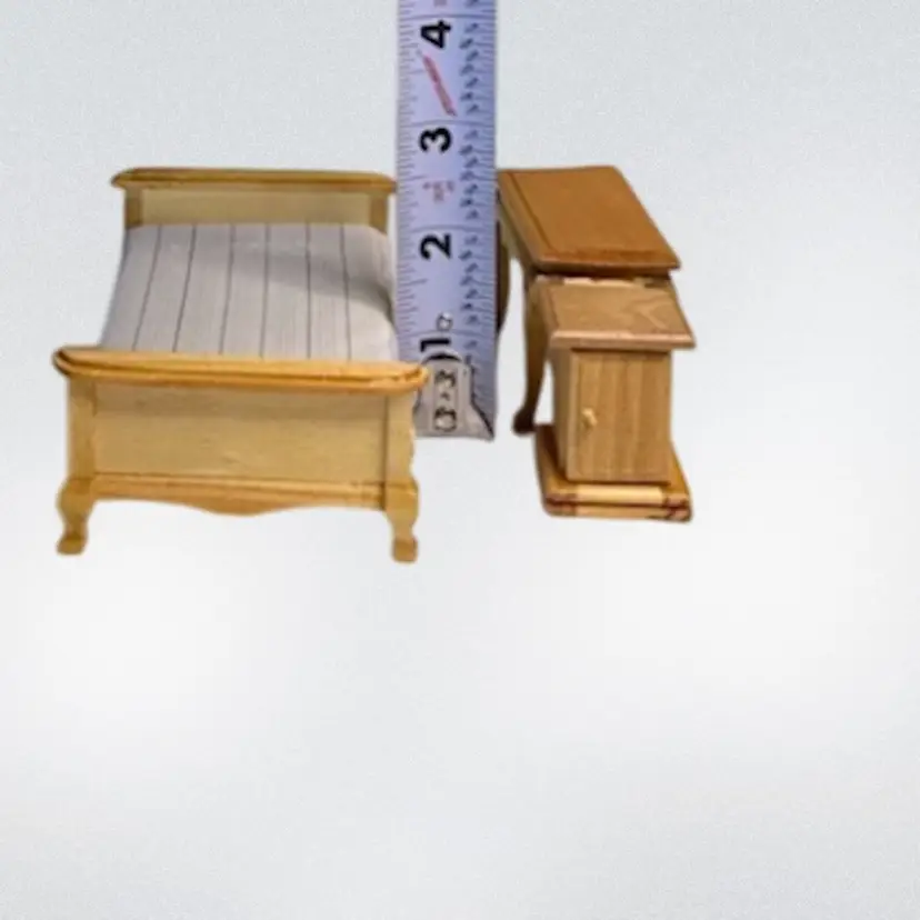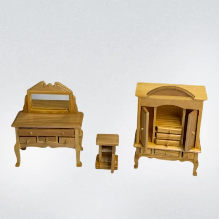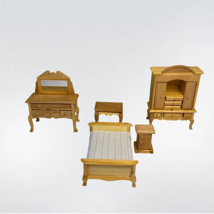 Miniature Wooden Doll House Furniture 5 Piece Bedroom Furniture Set.