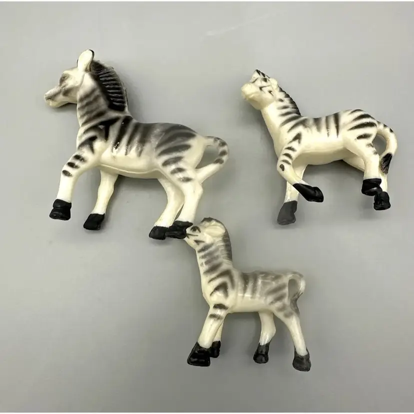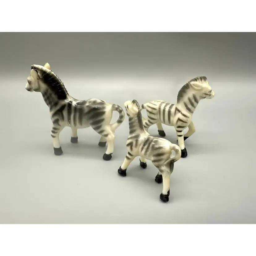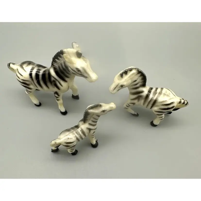 This trio of vintage MINIATURE zebra figurines showcases hand-painted details, evoking a sense of nostalgia. A charming addition to any vintage animal collection.
