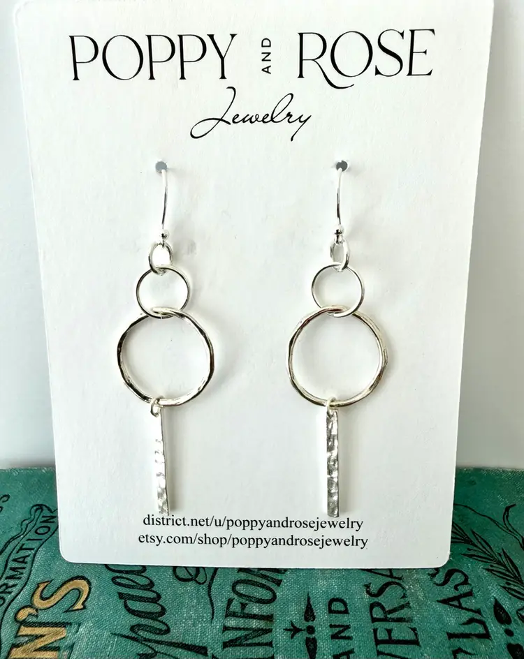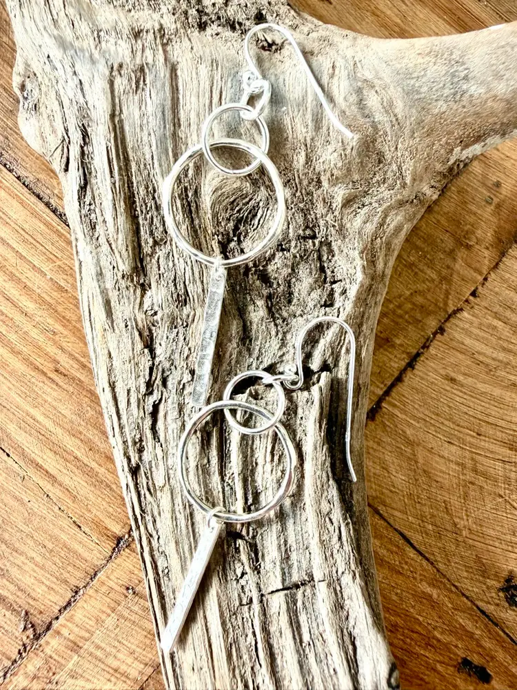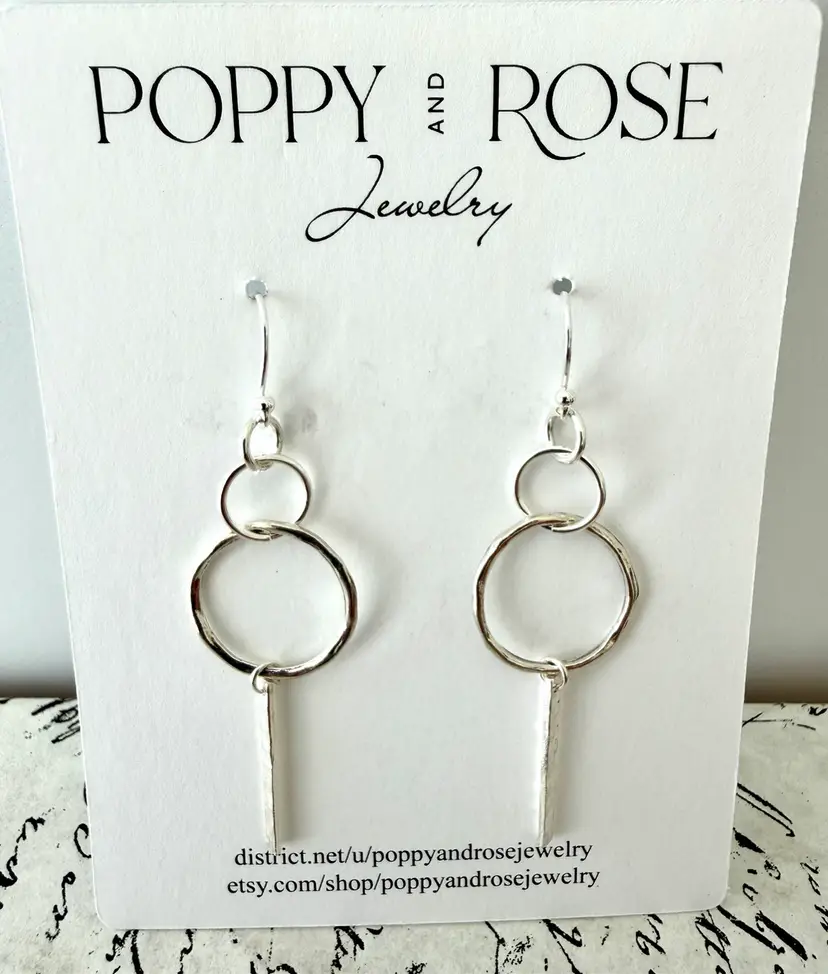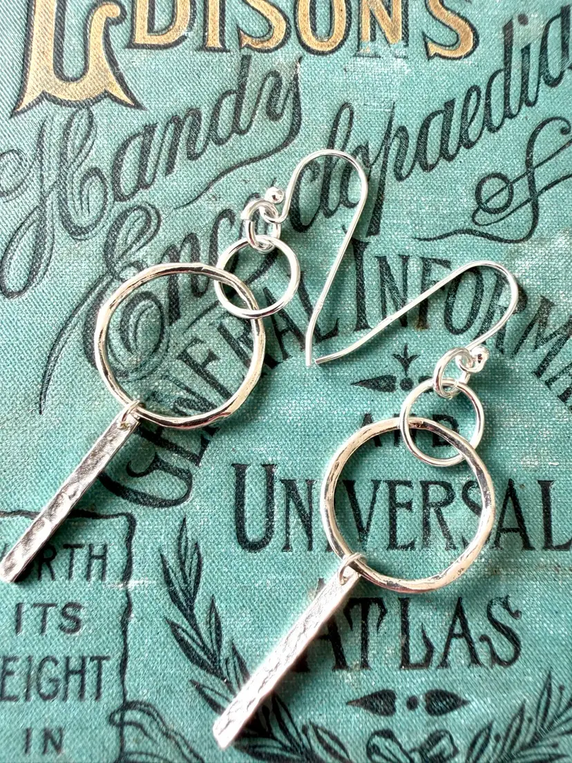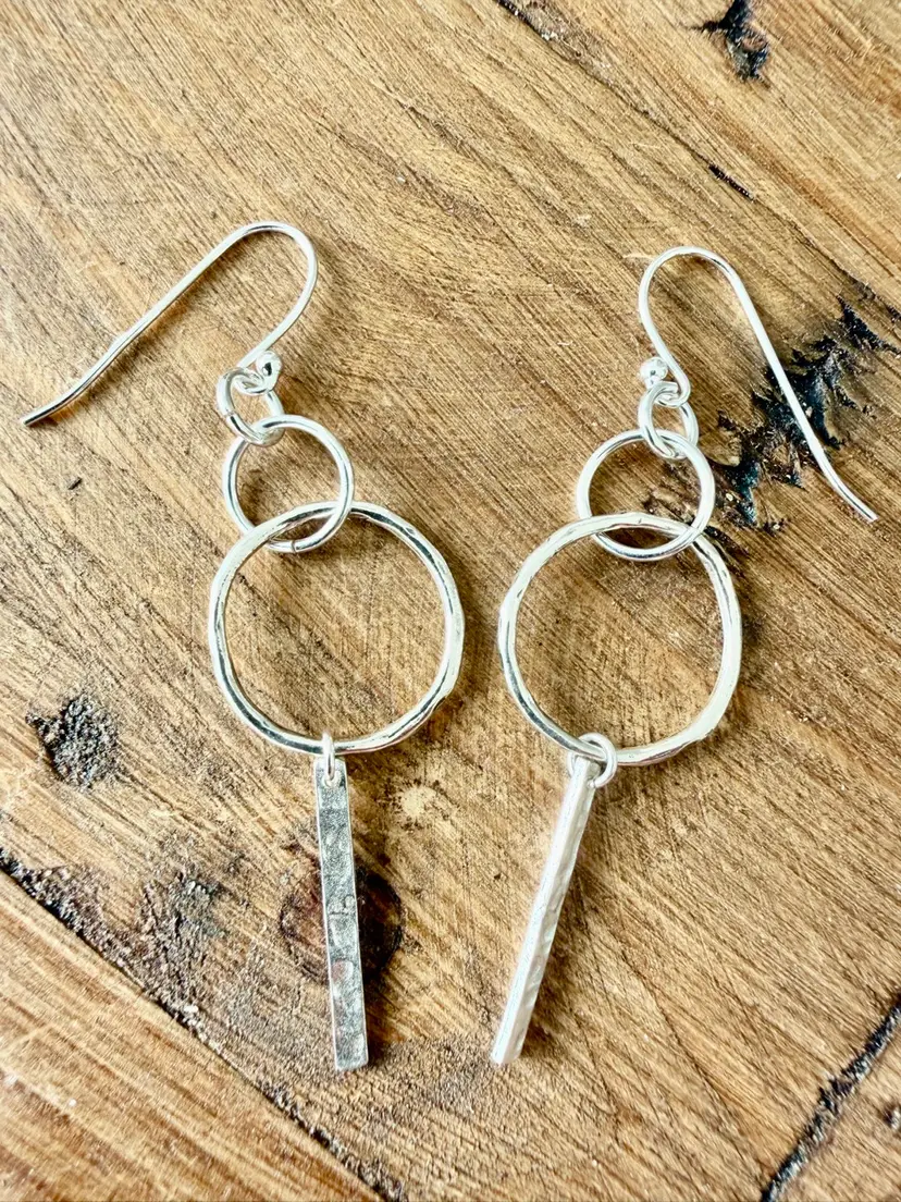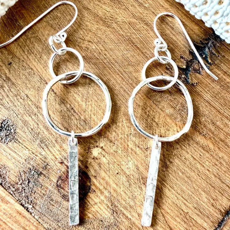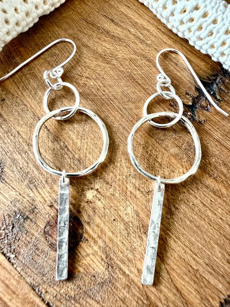 1 1/2” Drop Earring Sterling Silver Hammered Bar