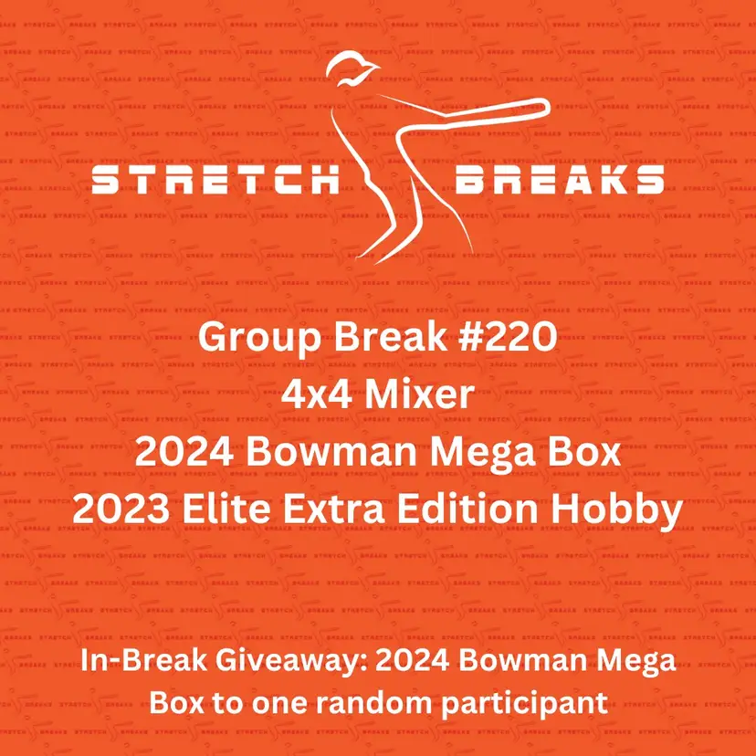 This break features the following products: 2024 Bowman Baseball Mega Box x4; 2023 Panini Elite Extra Edition Hobby Box x4
