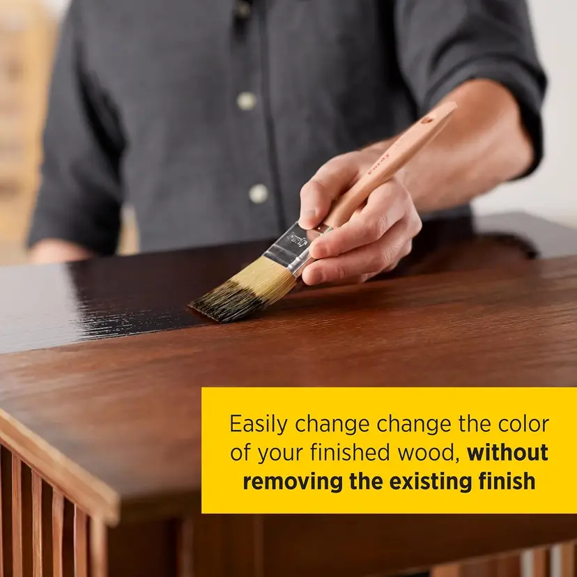 Can be used over polyurethane finishes, so you can change the color of your finished wood, without removing the existing finish.