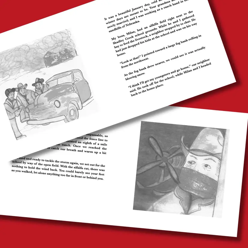 In 1952, a blizzard swept across the Nebraska Sandhills, blanketing the Nebraska prairie with snow and trapping a small group of students and their teacher in their one room rural school. This personal narrative picture book details the actions of two ordinary heroes who braved the Nebraska weather winds to rescue these children and bring them to the warmth and safety of a neighboring ranch. Grab your autographed copy and let your child discover the miracles that a blizzard can bring!