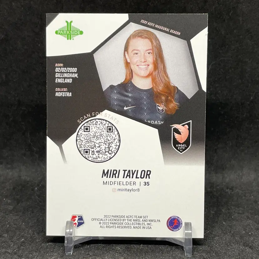 Set: 2022 Parkside NWSL Card Number: 1 Card Name: Team Set Parallel/Variety: Team Set Season: 2022 Player/Athlete: Miri Taylor Type: Sports Trading Card Features: Exclusive, Limited Edition, Rookie Manufacturer: Parkside Sport: Soccer Team: Angel City Fc, Japan National Team League: National Women's Soccer League (NWSL) Autographed: No