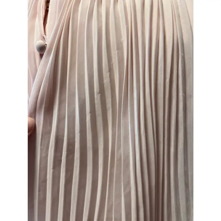 Removable floral belt Big shoulder pads Below knee length Romantic flowy layers Pastel pink