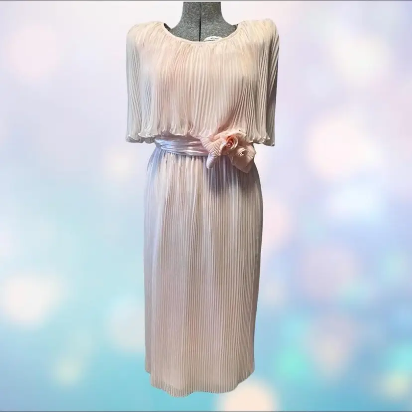 Miss Elliette late 70’s/early 80’s pleated chiffon capelet midi dress