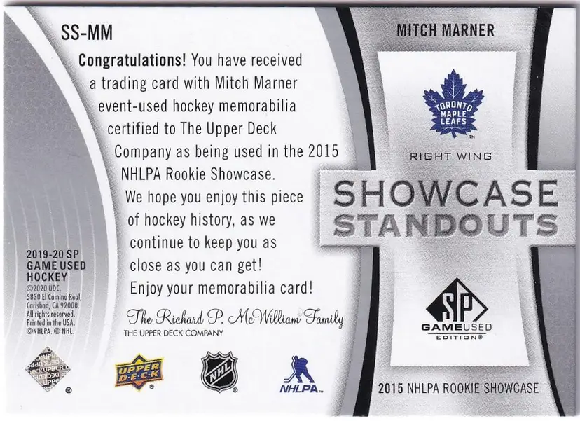 2019-20 SP Game Used Showcase Standouts Jerseys #SSMM Mitch Marner Toronto Maple Leafs