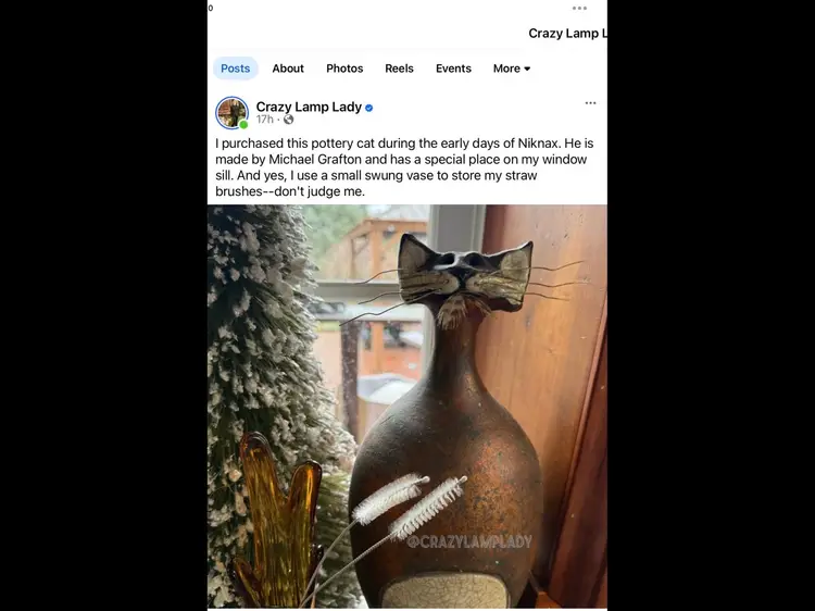 This is a wonderful Mitchell Grafton Raku “I ate the birds cat!” When Niknax first opened I sold Jocelyn CLL hers! As posted in the picture, this is his brother lol I’m selling! A little smaller than hers in great condition no chip no cracks smoke free home!