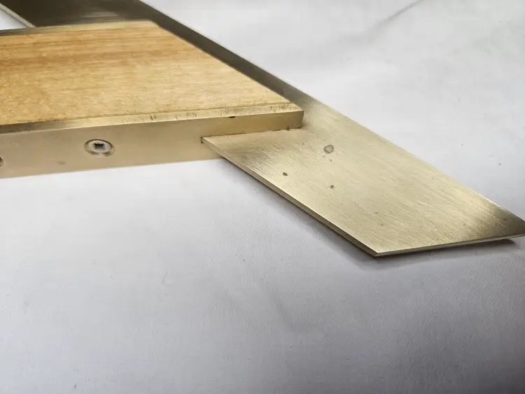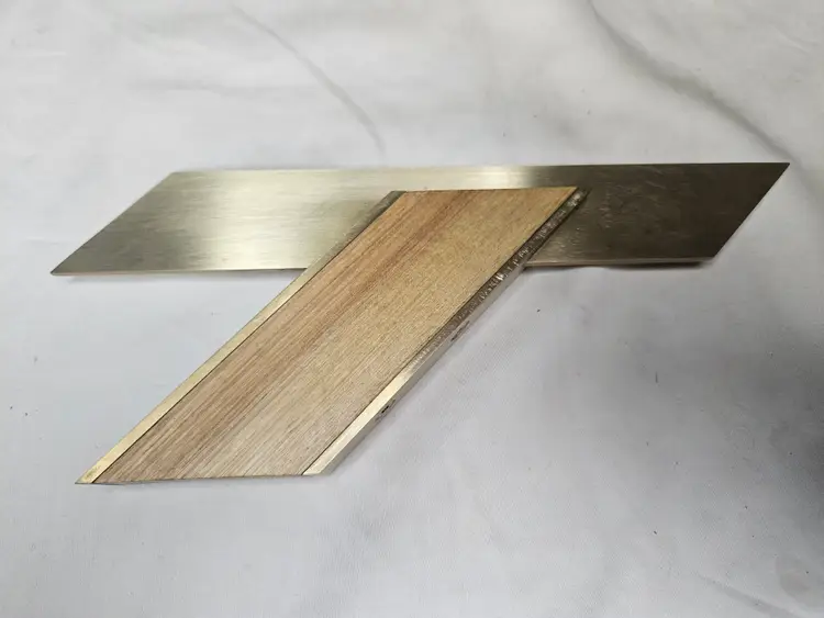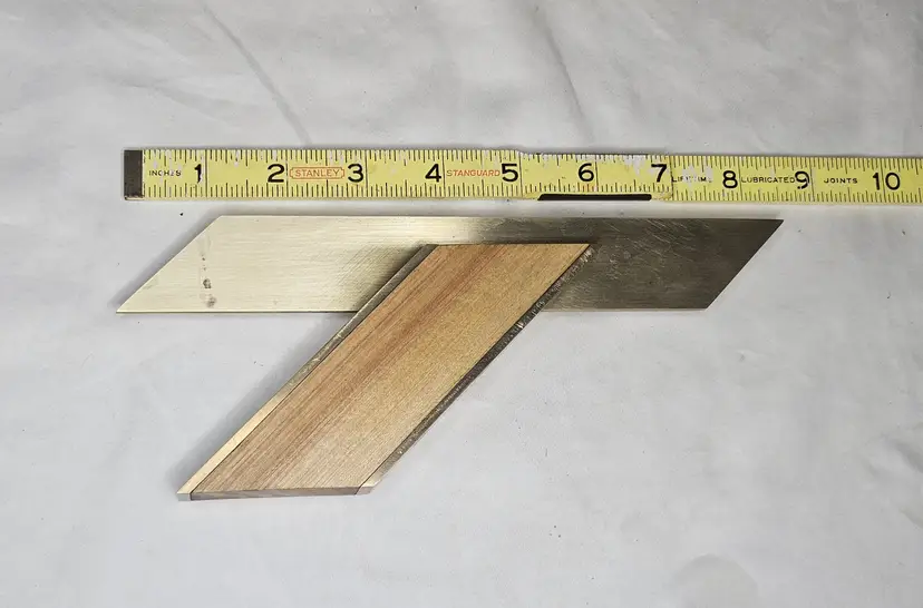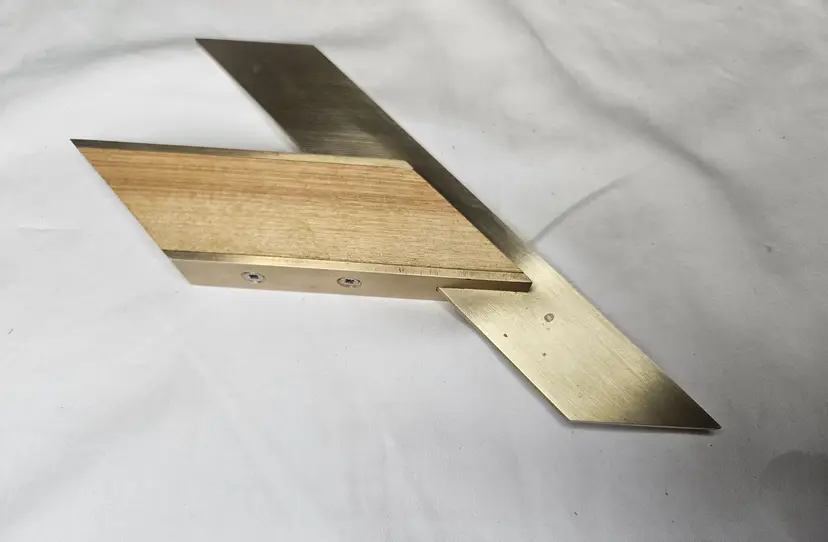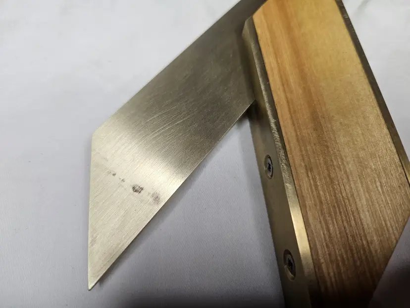 Unmarked mitre square. Minor tarnish on one side of the blade that will clean up easily.