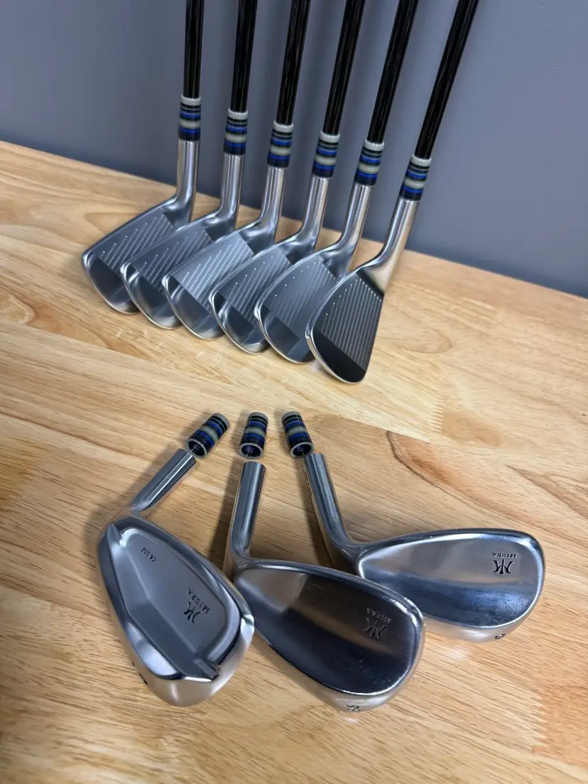 Miura Custom Built 2025 CB302 Iron Set!! W/New Vessel Miura Bag 5-GW, 56 &60 With KBS $taper 120 stiff shafts, Star Stx grips BB&F ferrules Irons have 1 round on them and bag has never been gamed and includes cart strap protector . 56 was used as some some play I’m very proud of this build but too nice of a set to sit in the corner of my office. Any question feel free to message me. All wedges are finished built will provide additional pics .