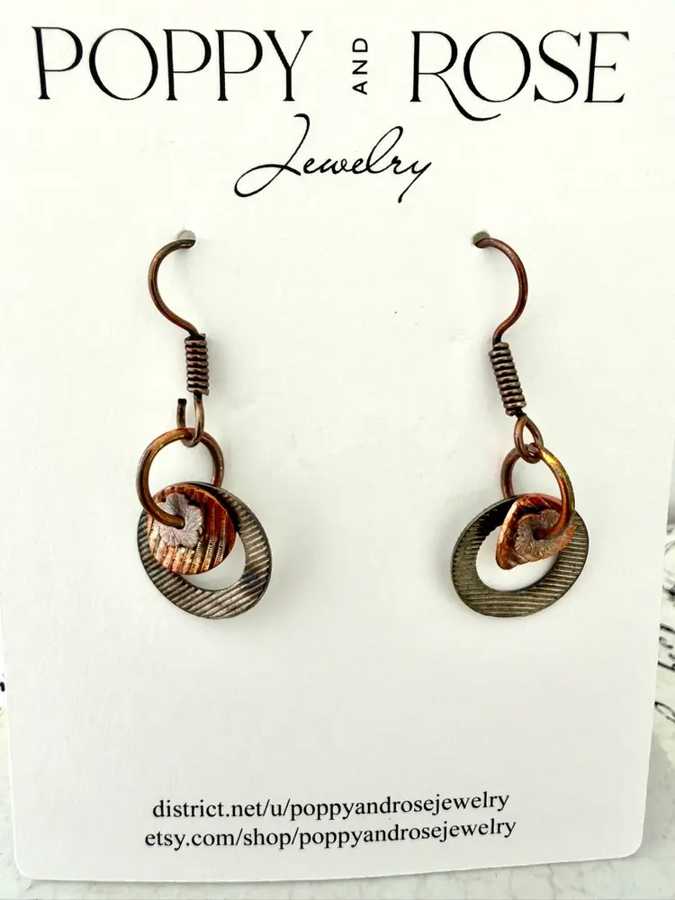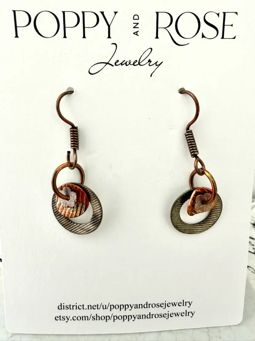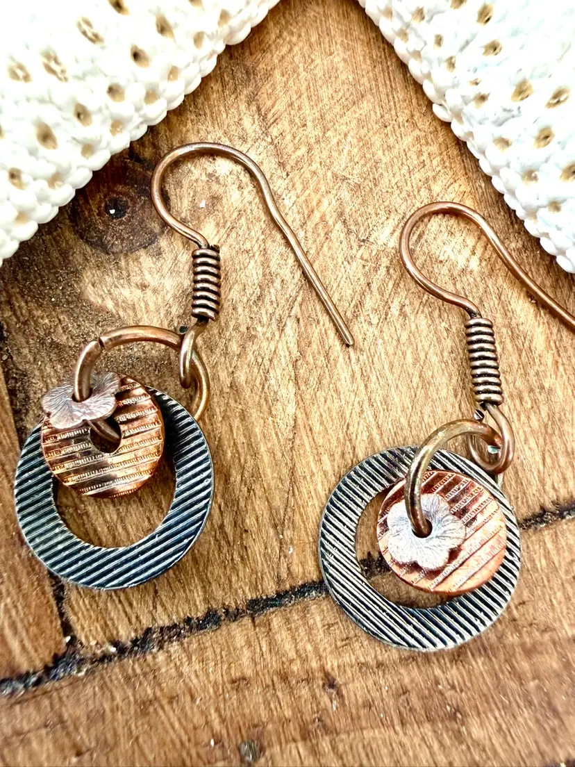 Copper and Brass 1 1/4” Drop Rings Boho design