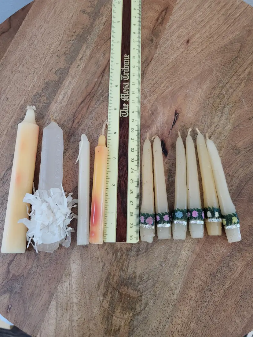 Nice set of 10 vintage small candles. See picture for measurements. Shipping cost is based on your location, size and weight of box item is shipped in. If you feel shipping cost is to high let me know what your zip code is and I can see if there is a cheaper option. Shipping is done by USPS, I choose cheapest option when listing but shipping will be USPS. I do combine shipping if you buy more than one item from my store. Any questions please do not hesitate to ask.