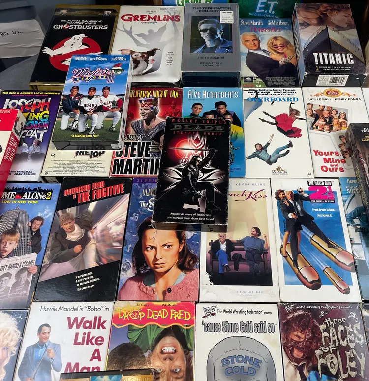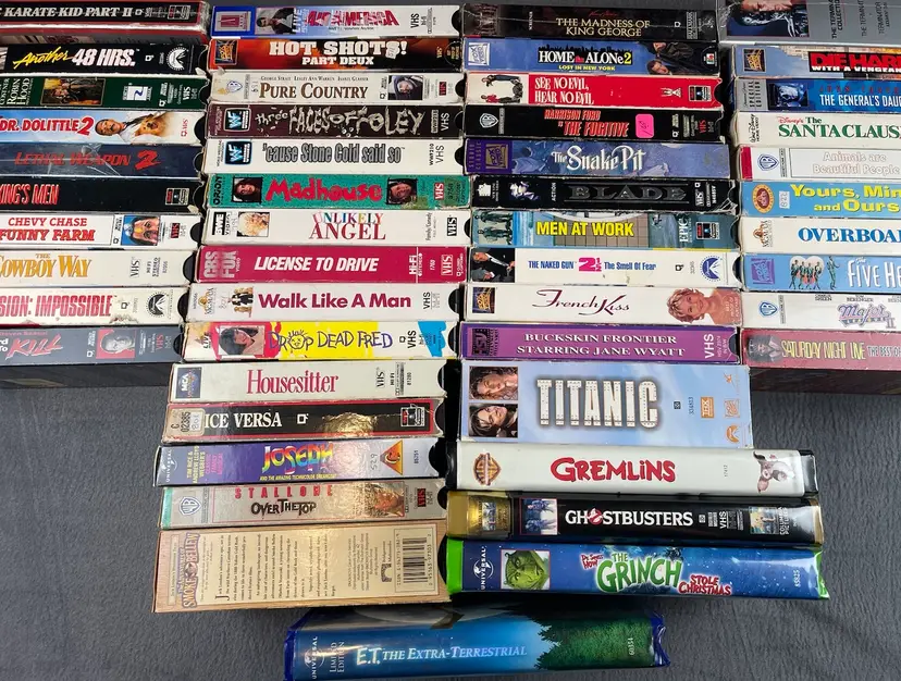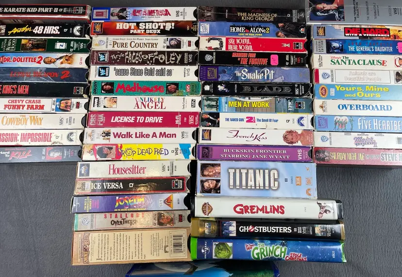 This lot is full of great Movies. There are 50 VHS tapes.Ghostbuster,Gremlins, ET, there are some big names.There’s a few new and sealed, a couple resealed preowned and the rest are all opened and used. These tapes are all untested, we did go through them all and check for mold and damage. A few of the boxes have damage to them but the majority just have shelf wear. These movies are boxed up and ready to ship out USPS media mail from Southern Indiana at 30 pounds in a 16x13x13 box. If you have any questions please feel free to message us. (We have also thrown a few extra tapes into each one of our VHS lots, to help fill the box and in case there’s a dud in the bunch.)