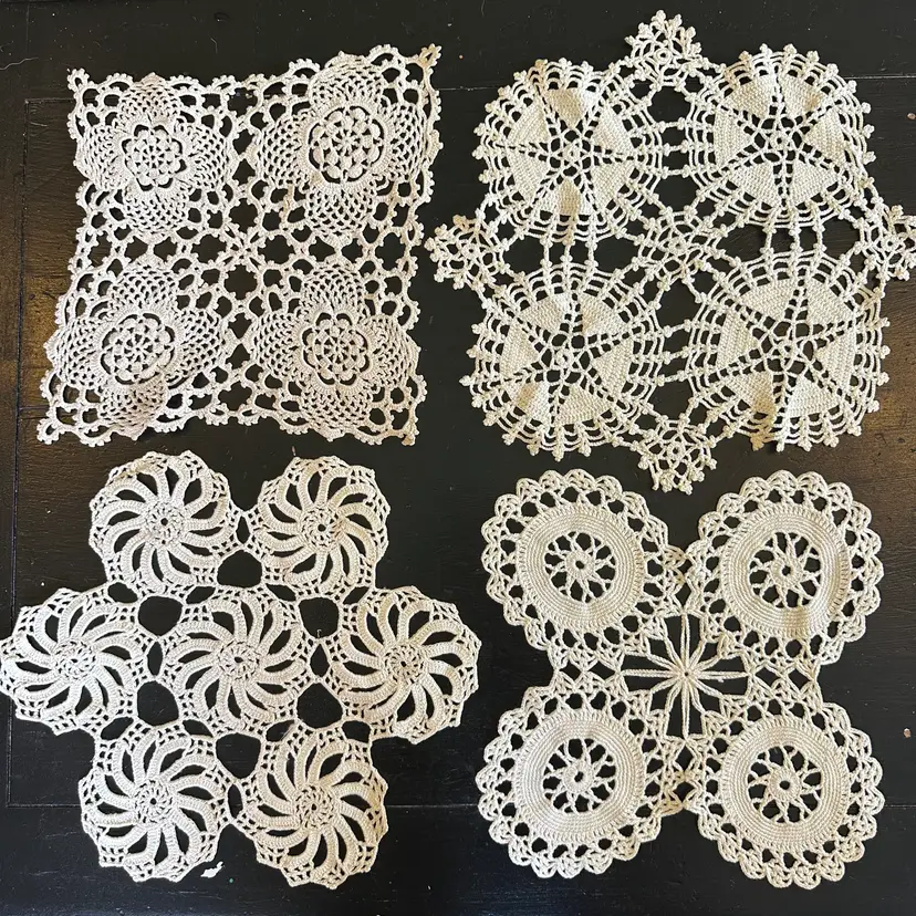 Mixed Lot of Vintage Hand Crocheted Doilies in good preowned condition. These doilies measure between 11 inches and 14 inches. Some minor yellowing. Please see photos for all the details.