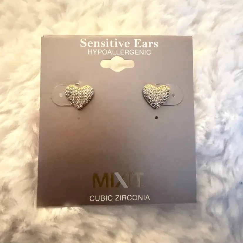 Hypoallergenic – great for sensitive ears Classic heart shape with glittering CZ stones Lightweight and easy to wear Brand new on original card