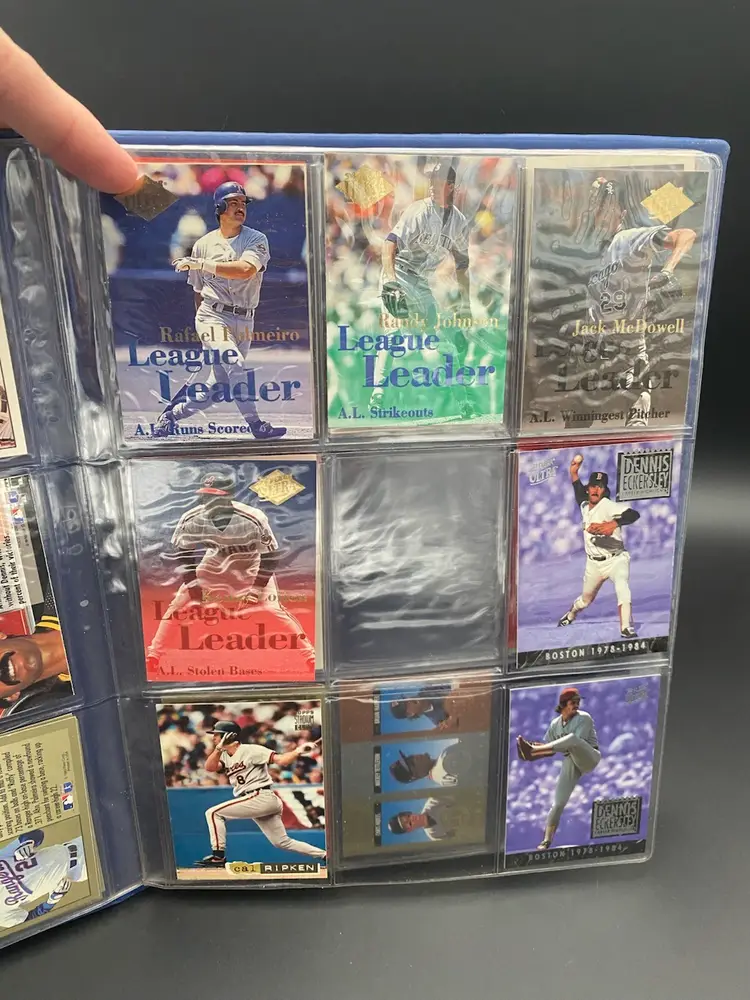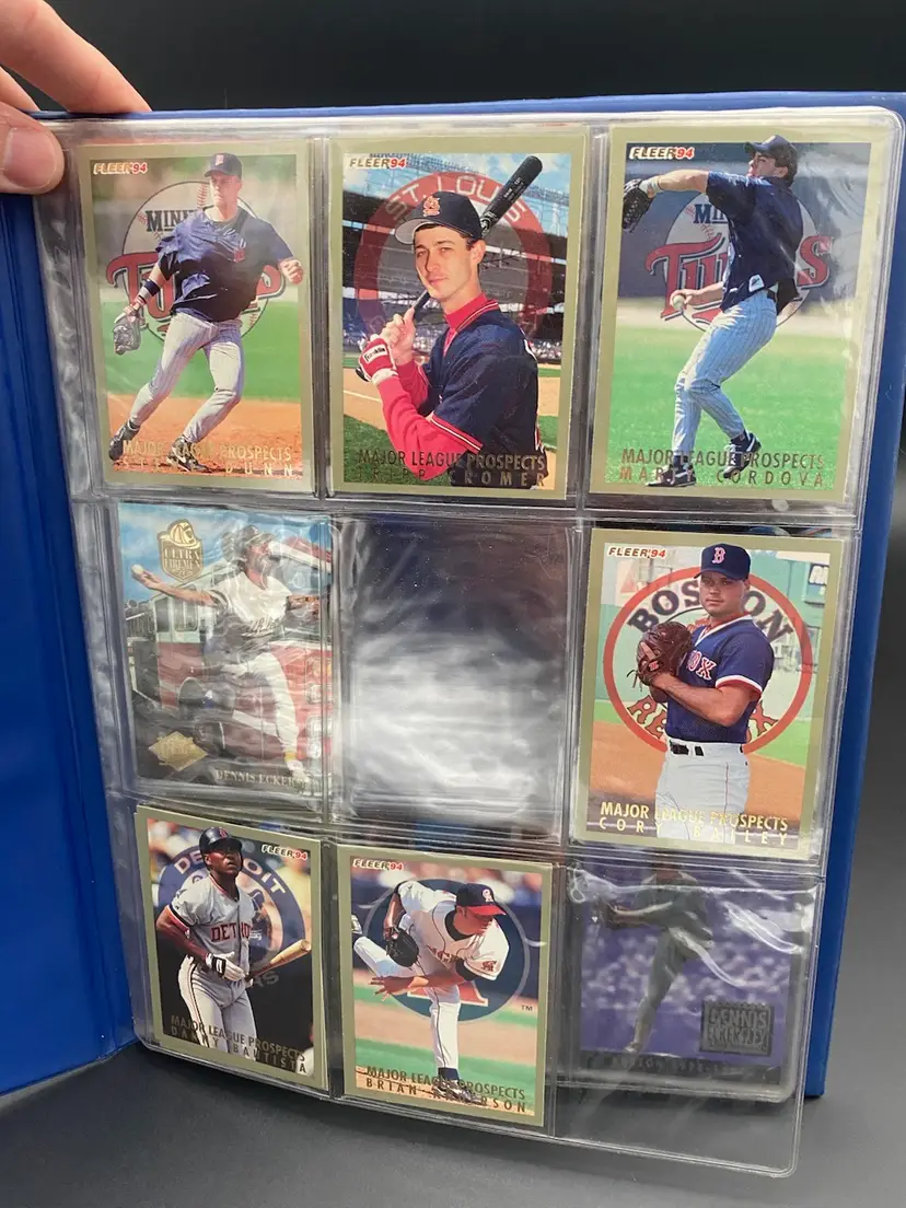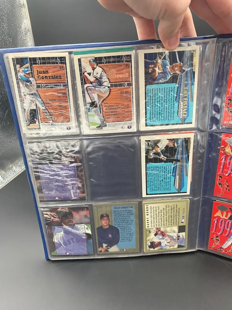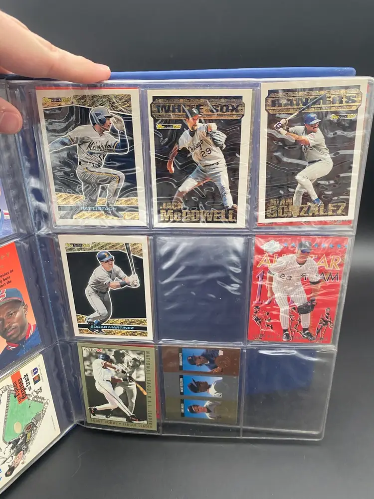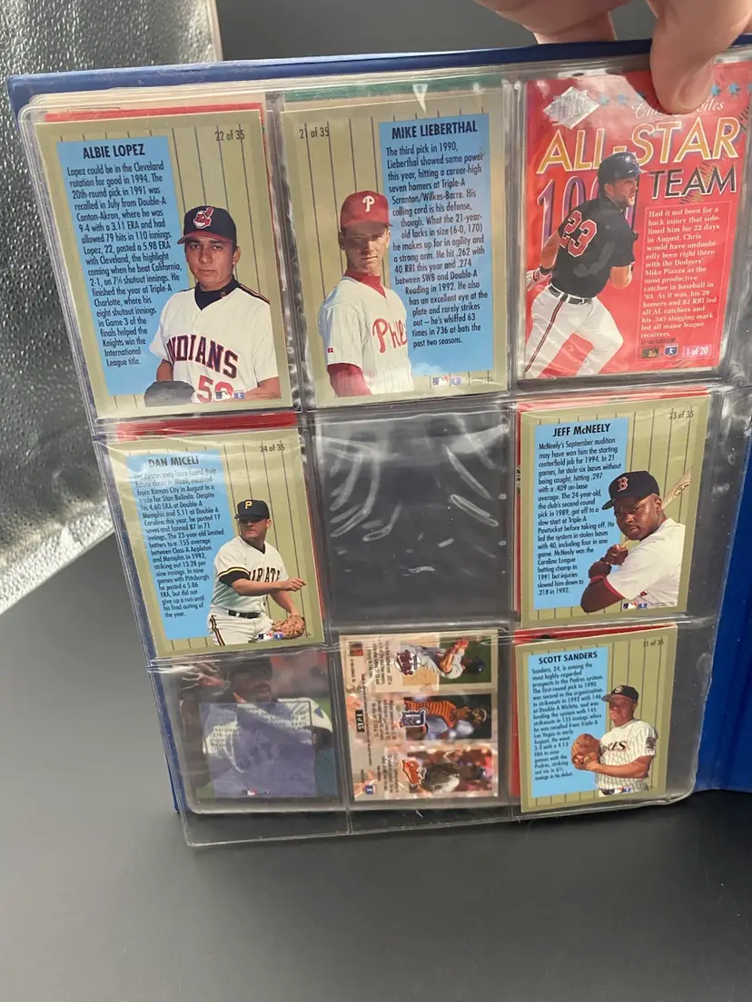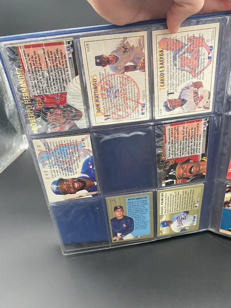 You are purchasing an Album of 36 Different MLB Insert Trading Cards. Look through the photos to see all of the Cards that are included in this listing, mostly from 1993-1994 Fleer and Fleer Ultra lines, with 4 Cards from the 1994 Topps Black Gold line. These Cards are in Excellent to Near Mint Condition. Album Book has some wear, including a split in the bottom exterior spine.