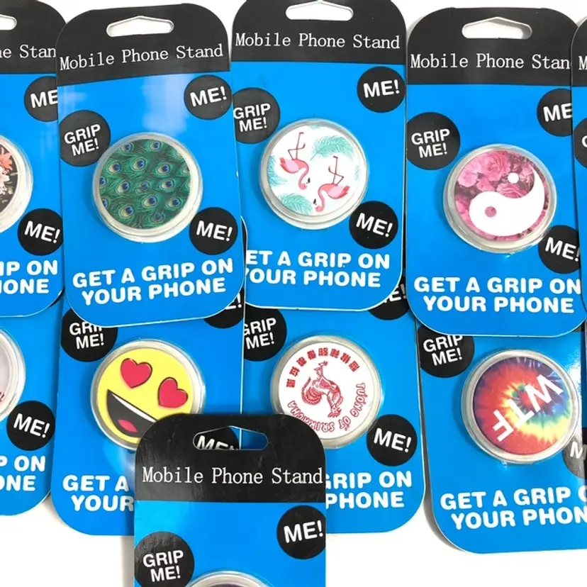 Novelty Phone Tablet Grip Bundle for Media Chat Stand or Cord wrap 15 different designs- all new in package. mart149