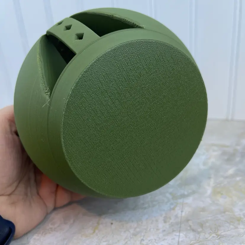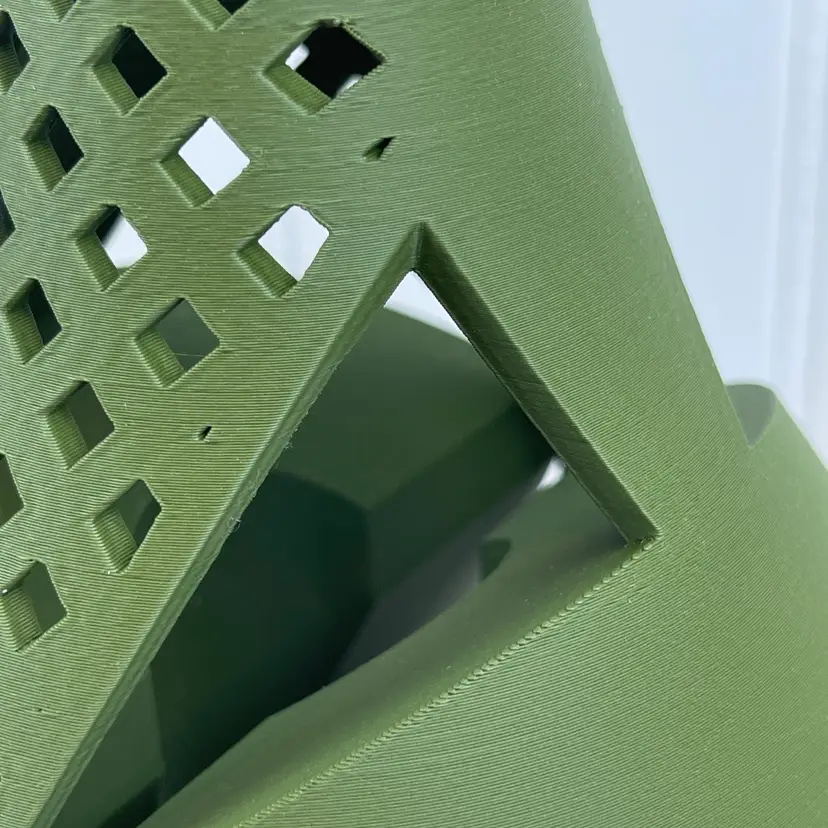 The holder is 3D printed using PLA plastic filament. 3D printing is done by printing layer upon layer of filament to build up and create the print.