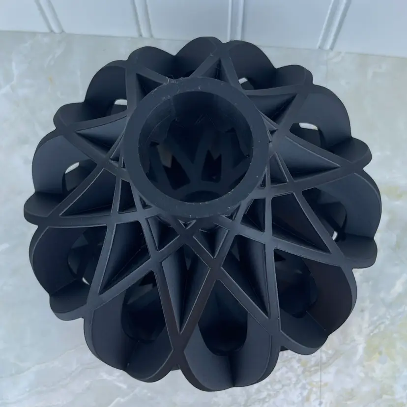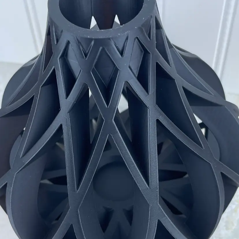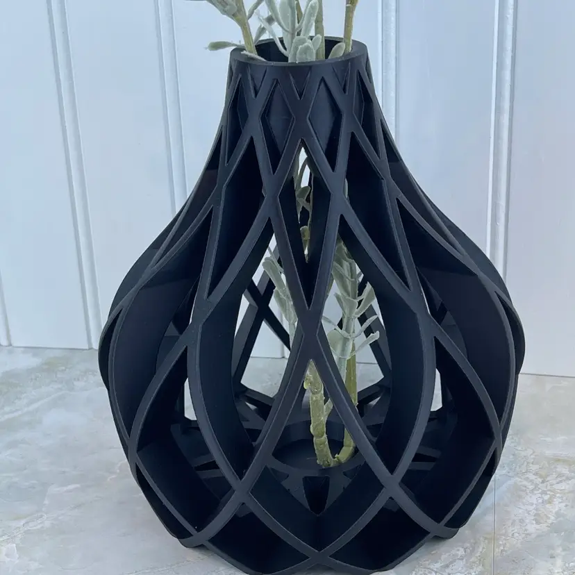 Introducing the Vukan vase! Add some modern flare to your home with this beautiful 3D printed vase. The vase is great for artificial or dried flowers. If you want to use for real flowers it will need to insert a test tube vase. There is a small opening in the bottom to help hold the test tube vase.