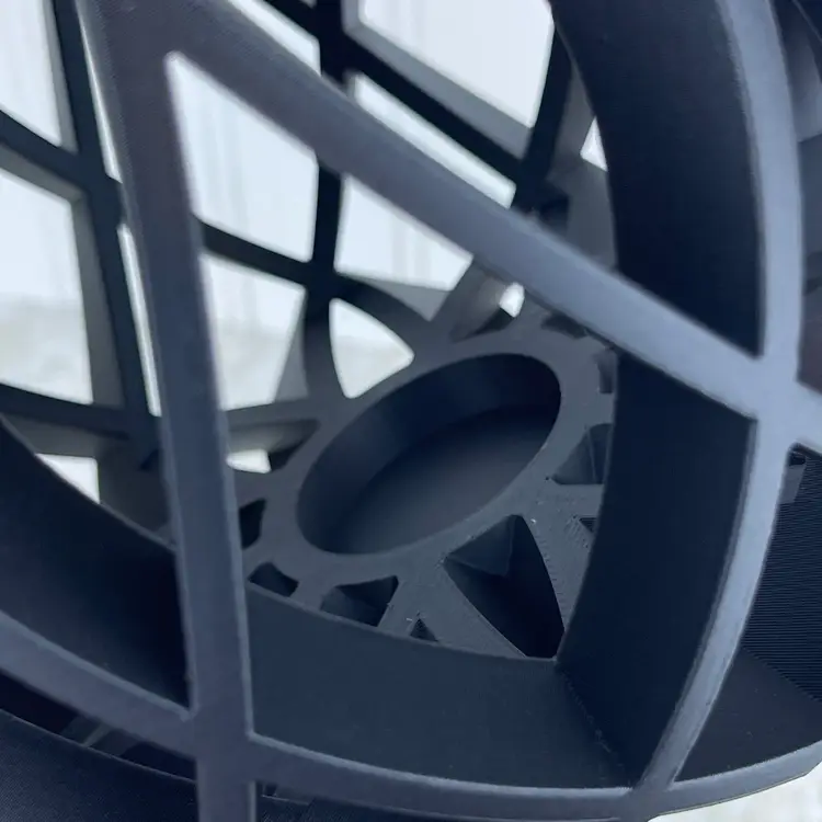 The holder is 3D printed using PLA plastic filament. 3D printing is done by printing layer upon layer of filament to build up and create the print.
