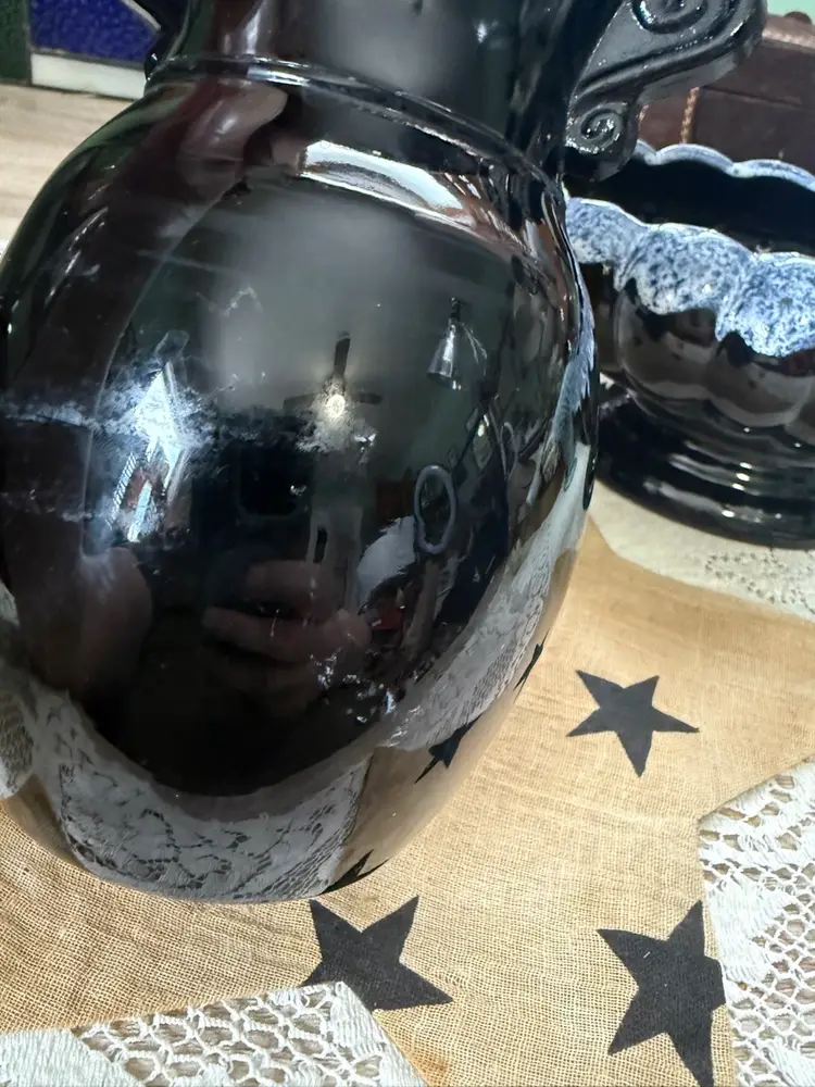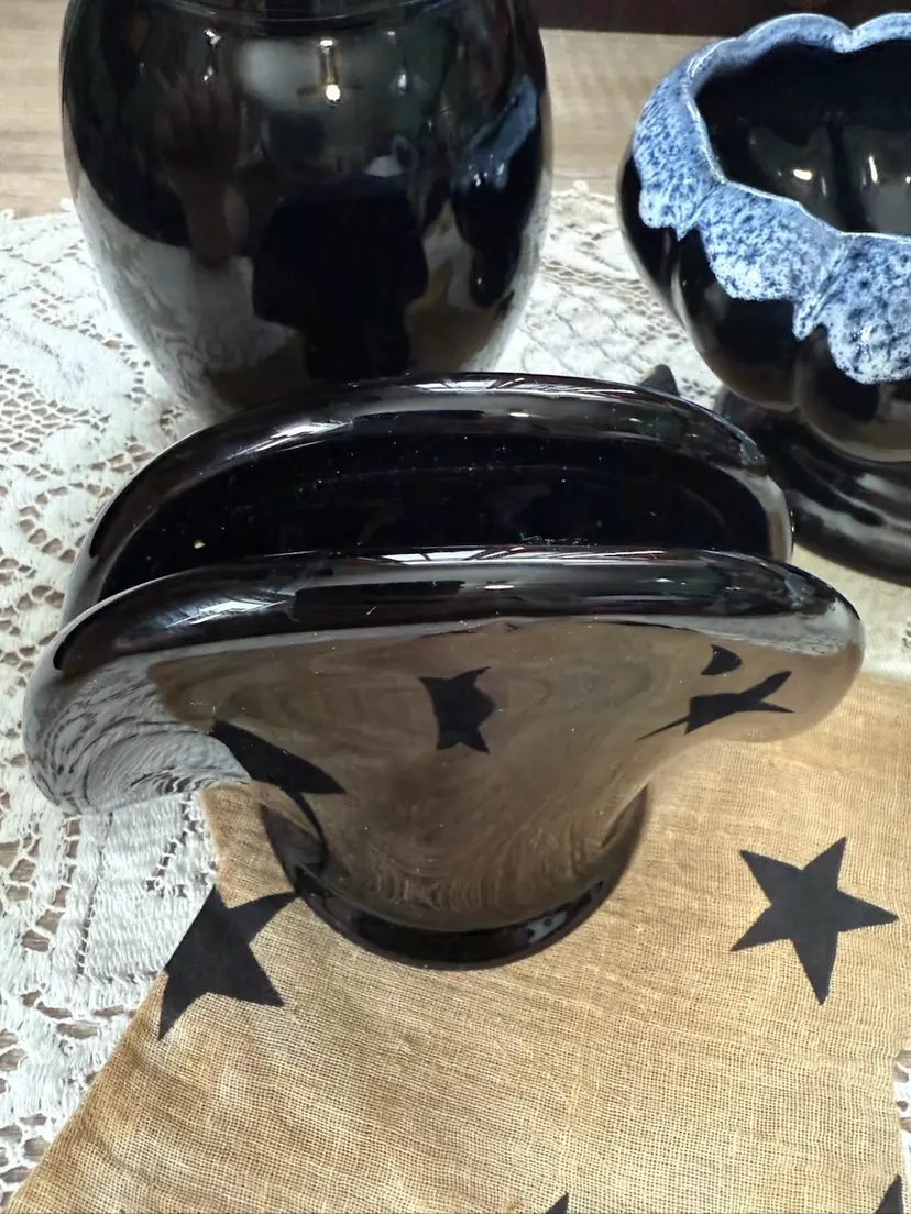 LE Smith vase with S handles Please note there is some white scuffing on the piece. Measures 7”