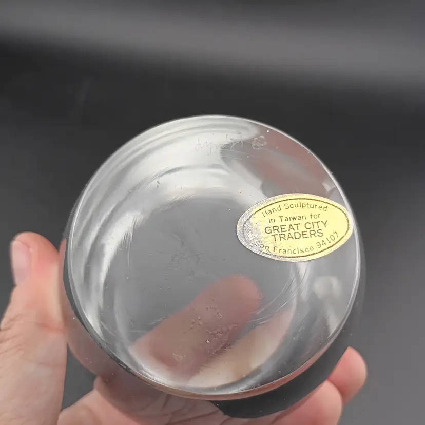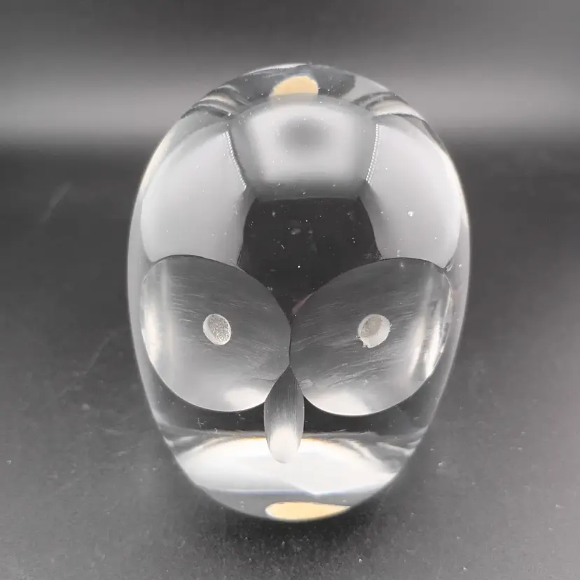 It's a fabulous modern owl paperweight with large satin eyes, made in Taiwan for Great City Traders. It's in excellent vintage condition with the original sticker and no noted flaws.