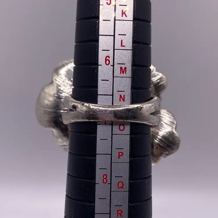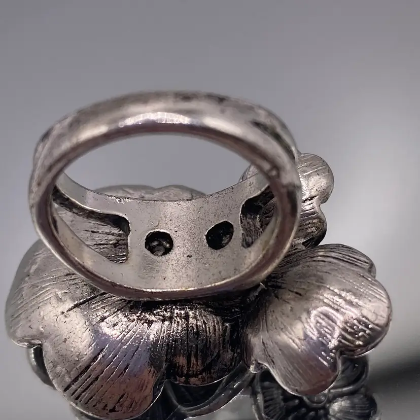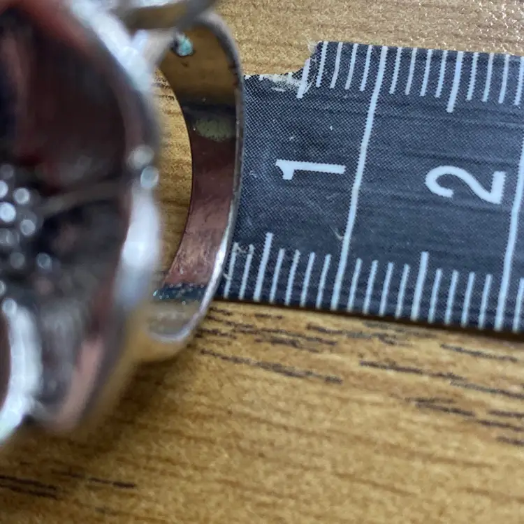 This ring comes in good pre owned condition. Some very very slight signs of wear to the silver tone metal.