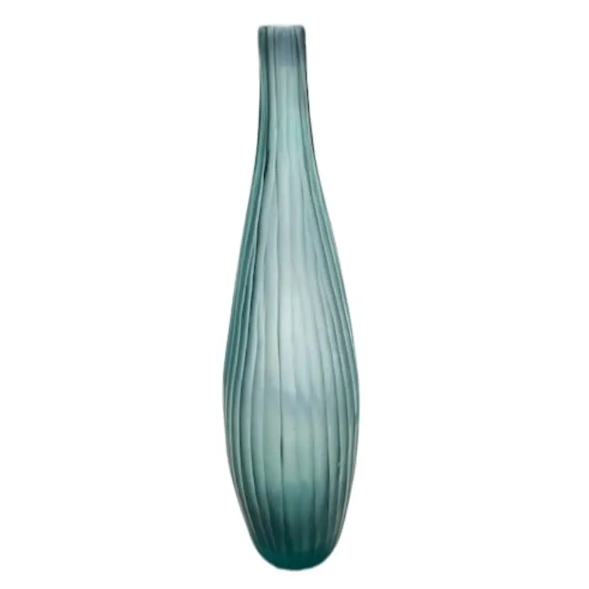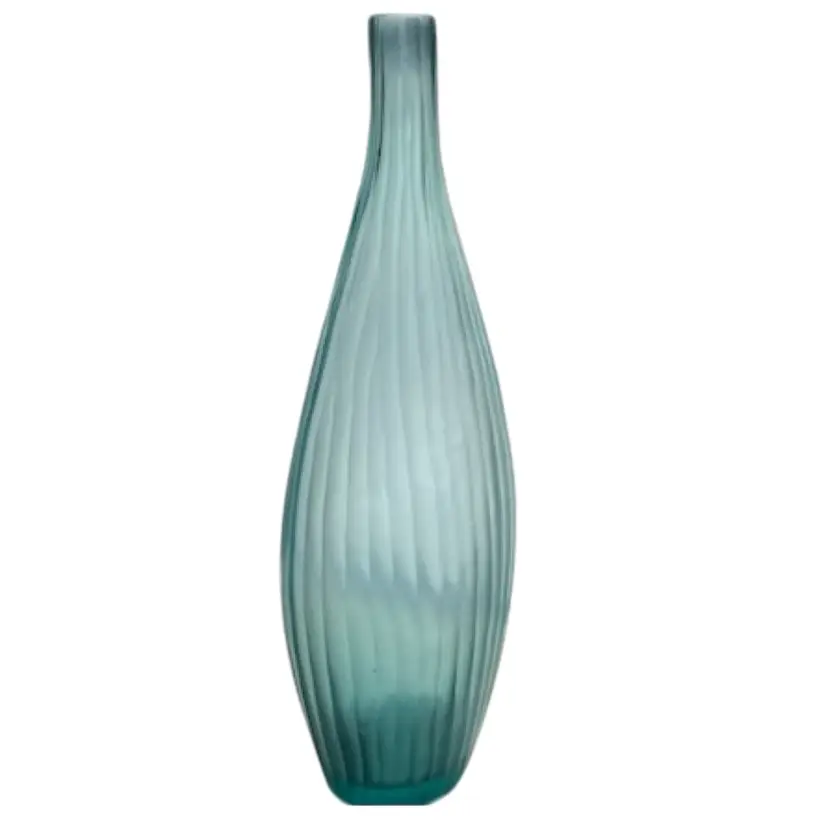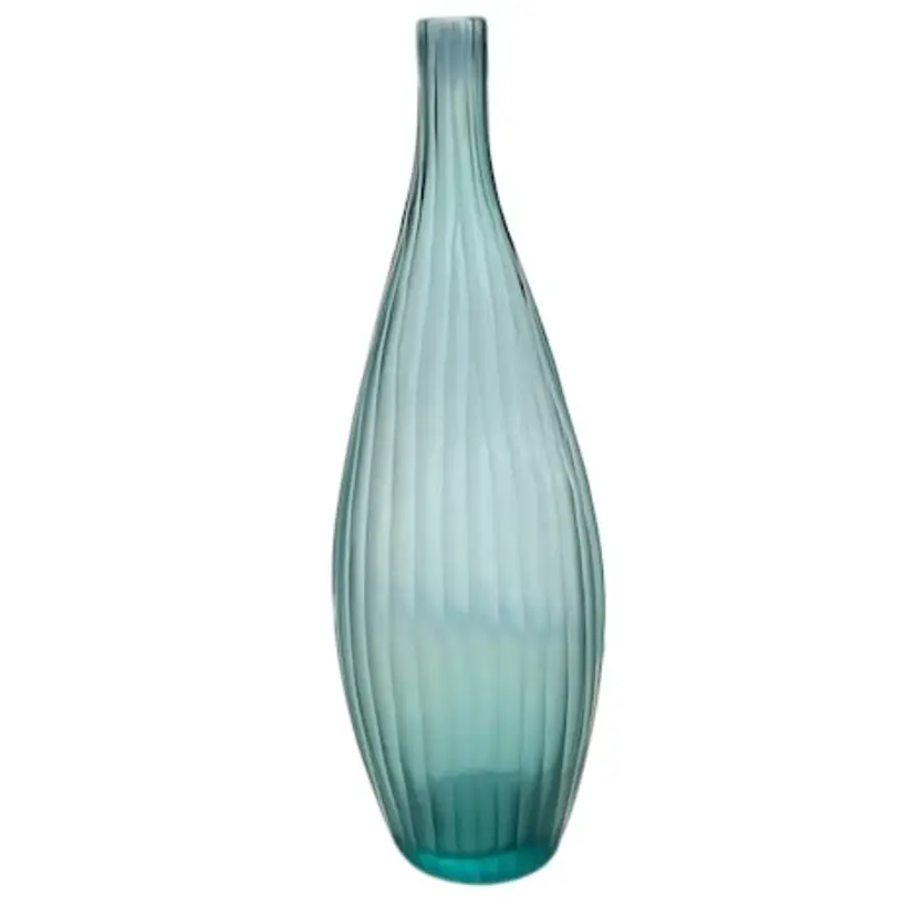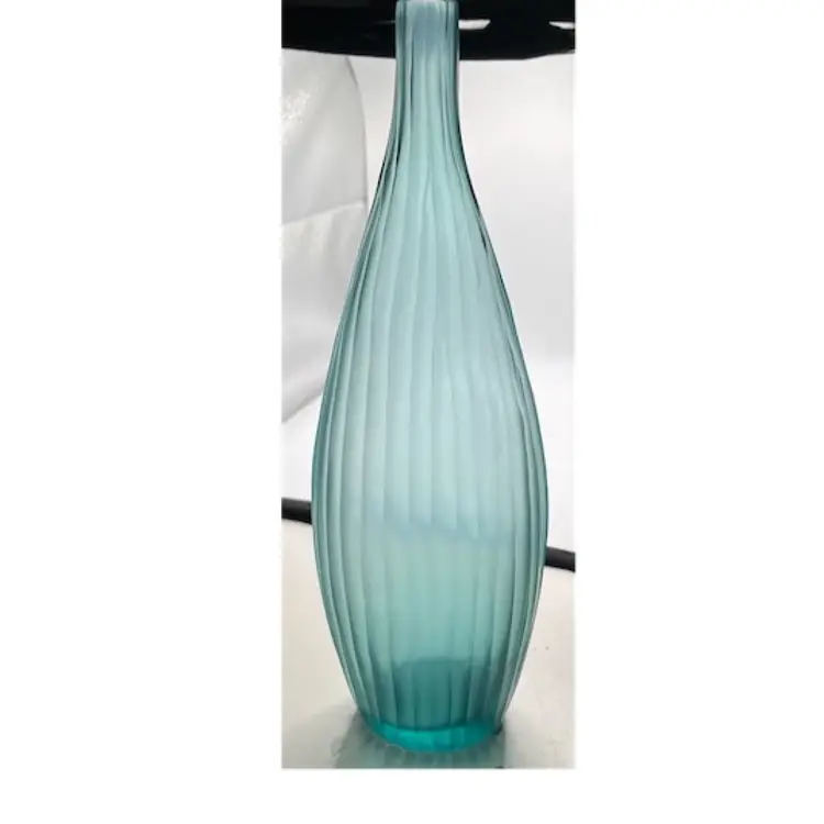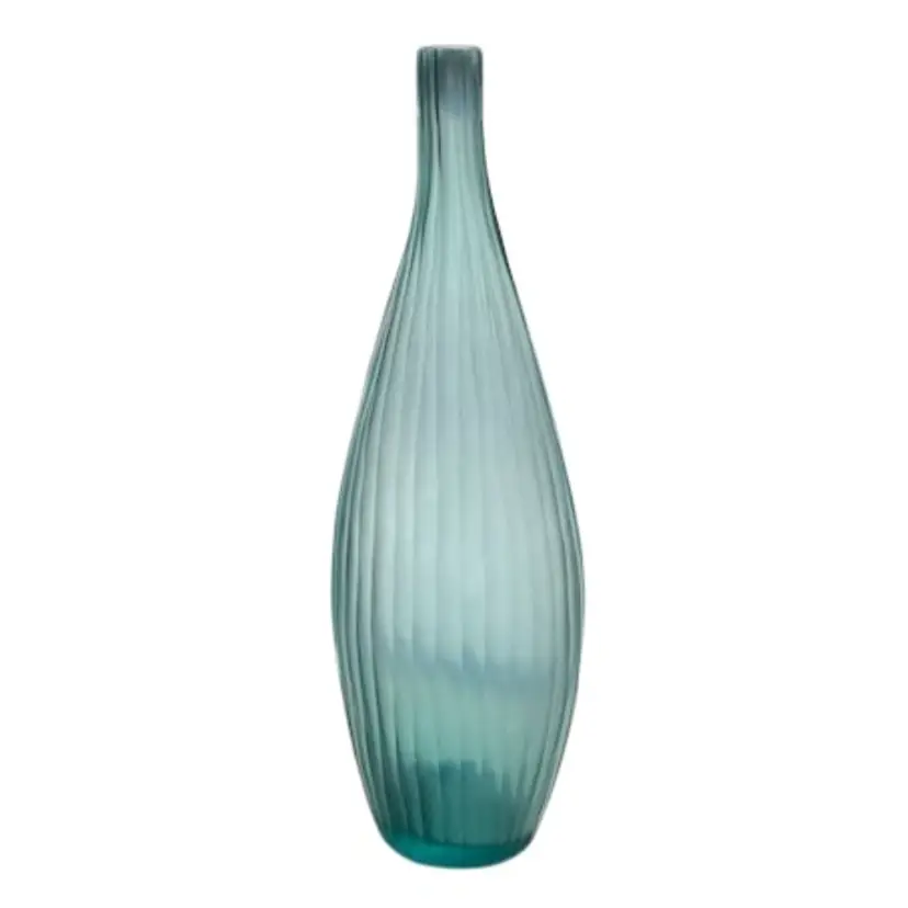 Moderna Hand-Blown Glass Vase - Tinted Blue, 41 x 14 x 10 cm Beautiful hand blown ribbed vase. Smooth pontil and probably Italian. . Very nice feel of glass. Stunning vase