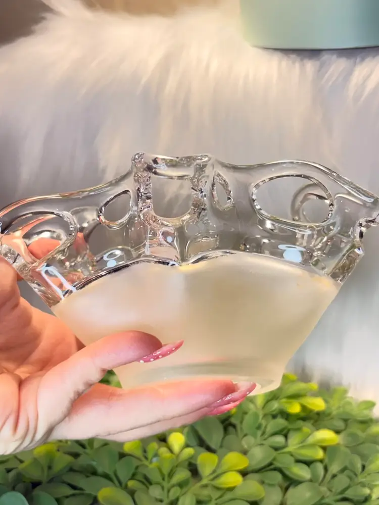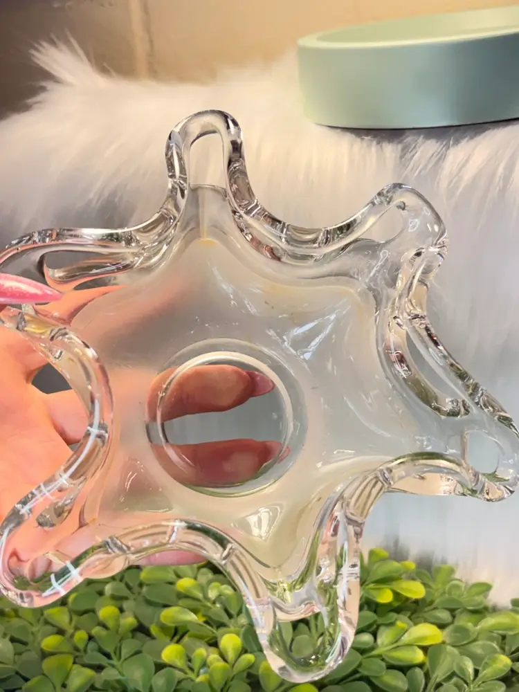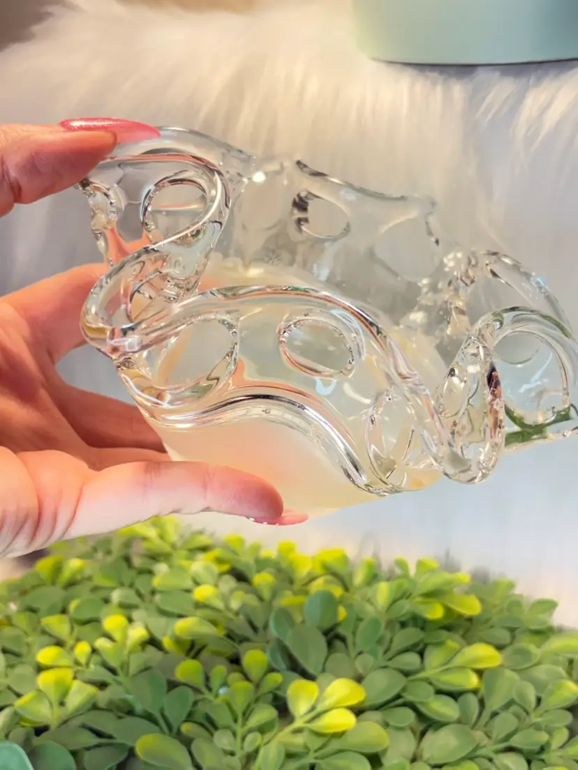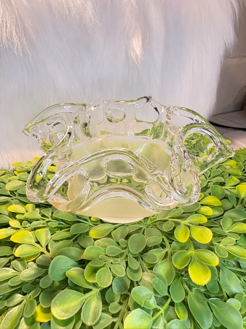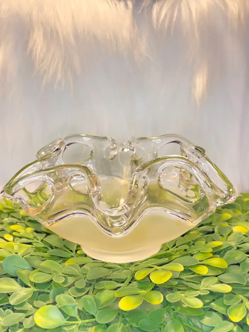 Modernist Freeform Clear Glass/Matte Amber Bottom Art Glass Bowl