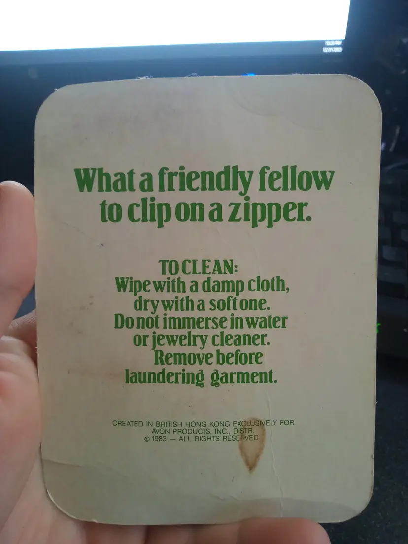 Avon Zip a Zoo. Modest Monkey Zipper Pull. Form 1983