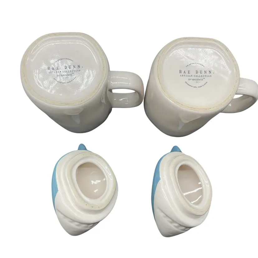 This set of Rae Dunn ceramic mugs combines functionality with a whimsical shark design, featuring shark-shaped lids and a sturdy handle for daily use.