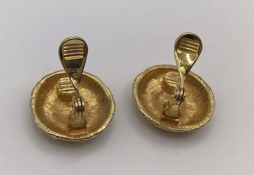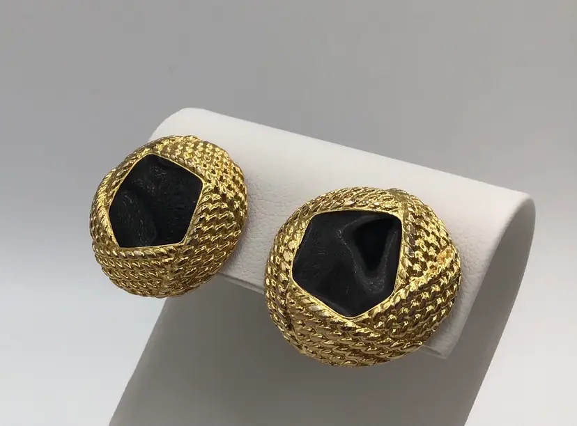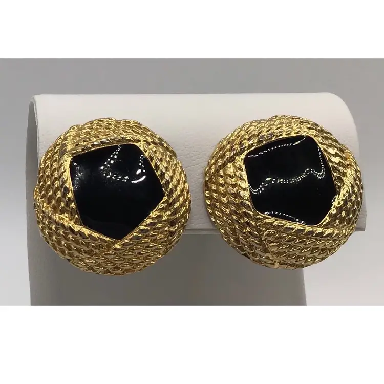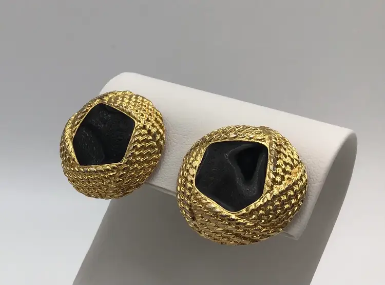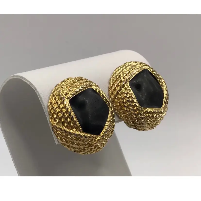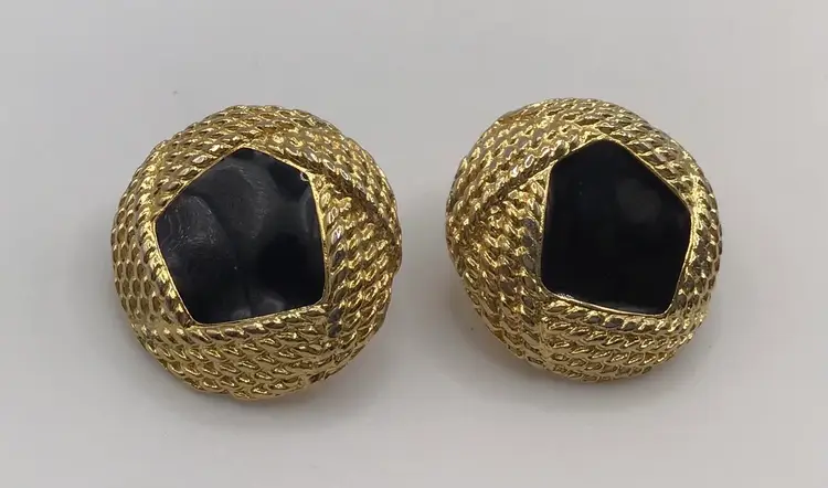Vintage gold tone rope texture pentagon shape clip on. Very good condition. #064
