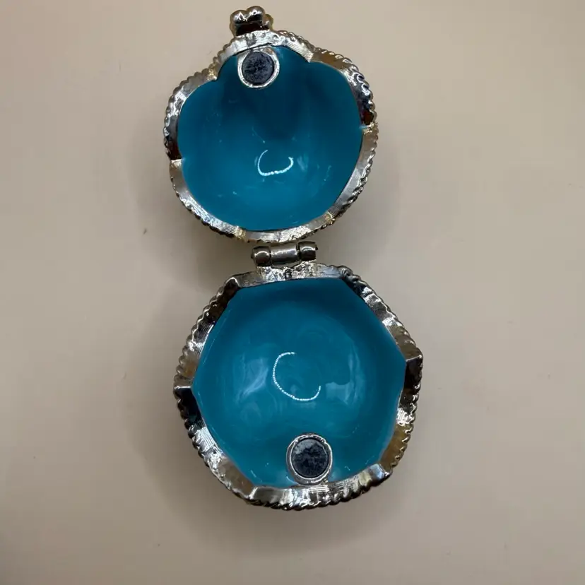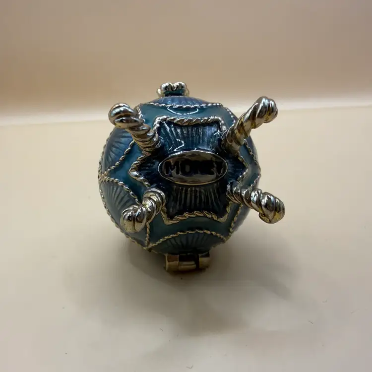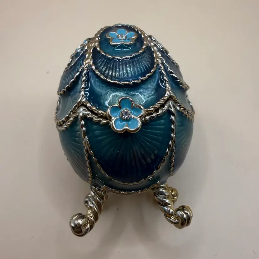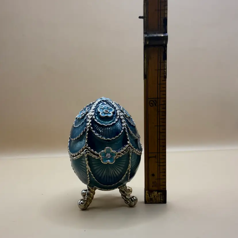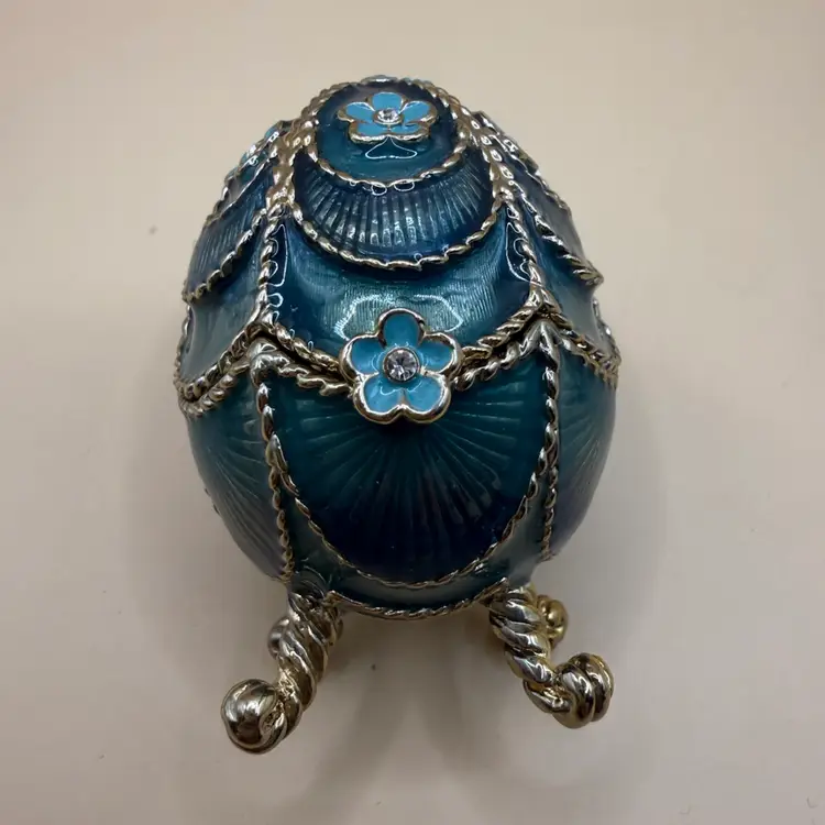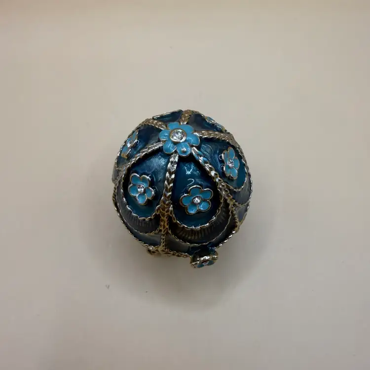 Monet Blue Floral Fabergé Egg Style Trinket Pill Box 2”