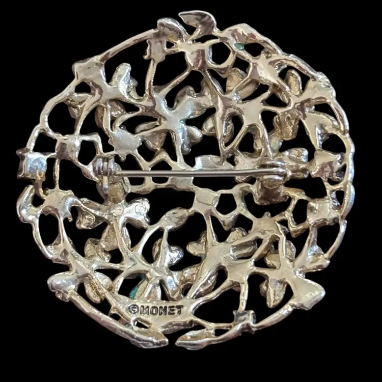 Lovely colourful floral, gold tone monet brooch In good condition 1.75”