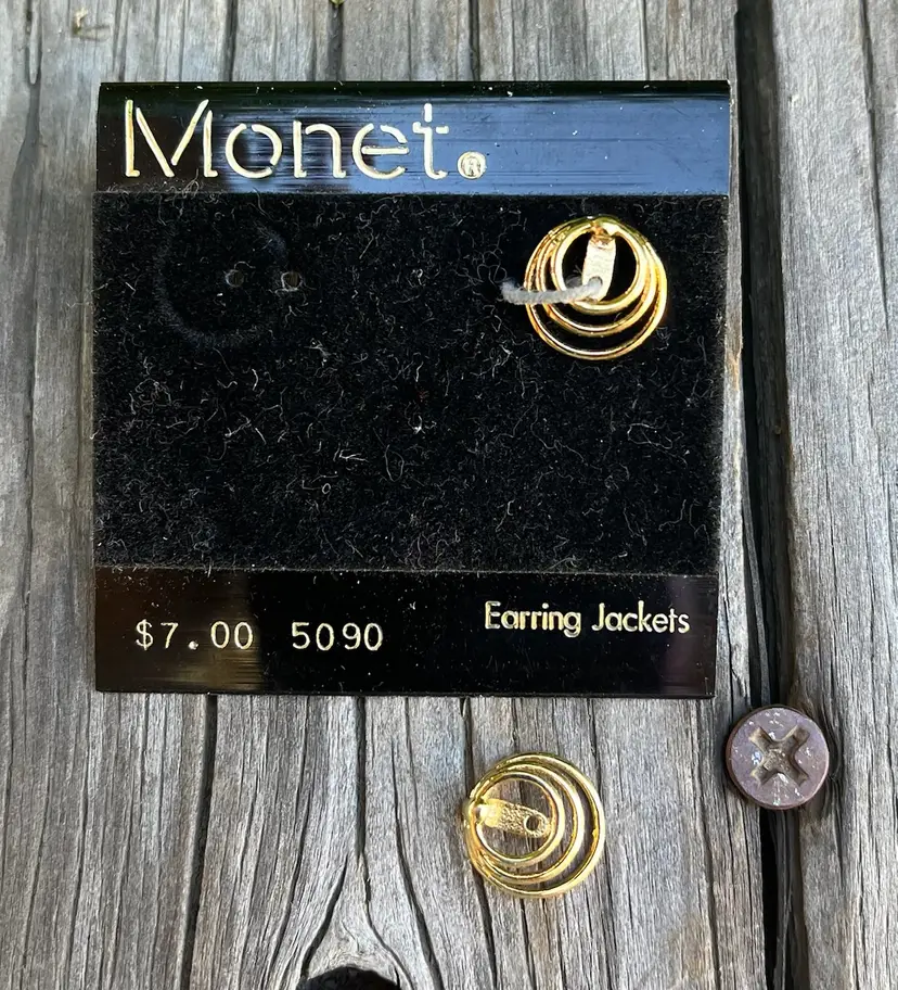 A pair of Monet Earring jackets. A nice way to update your earrings. They are approximately 1/2 inch round. Number 5090. Pre-owned. Excellent condition.
