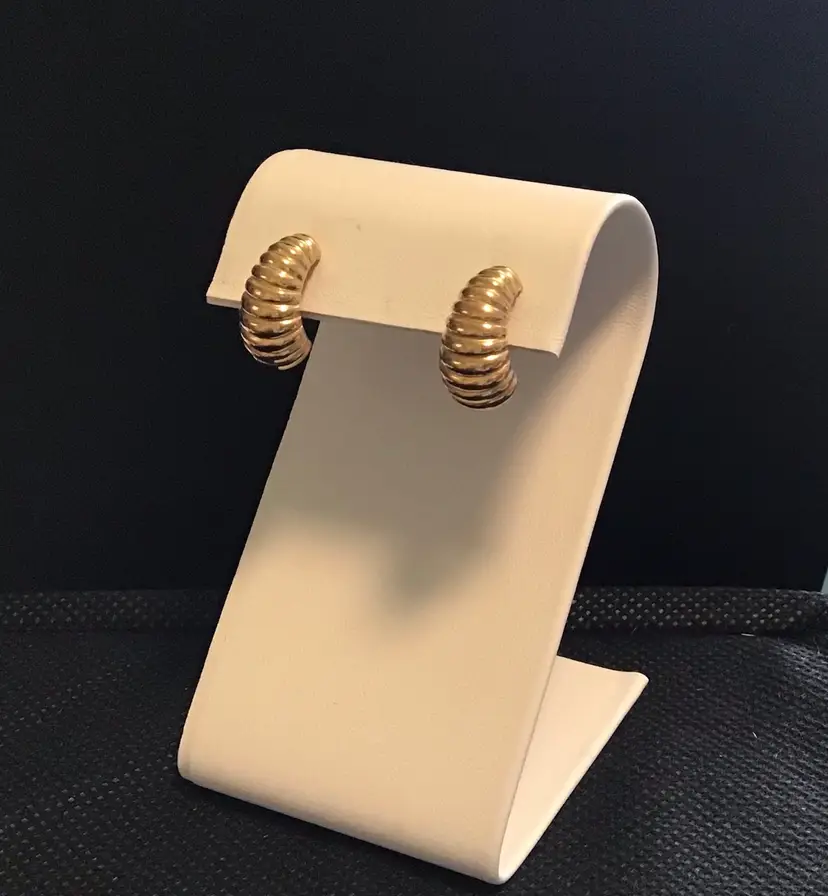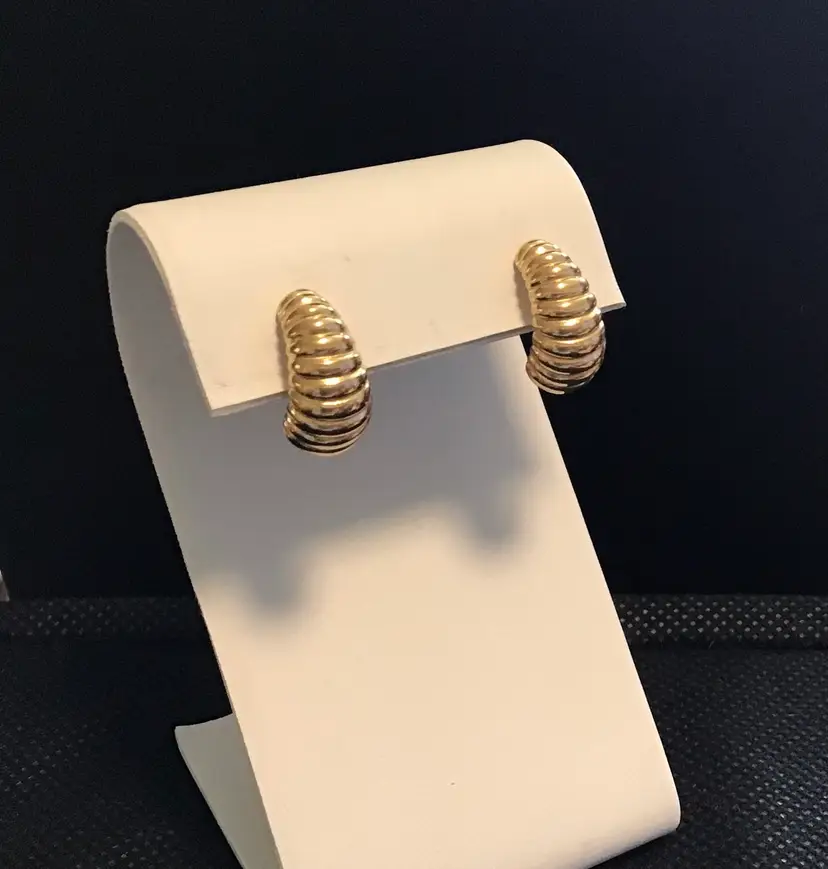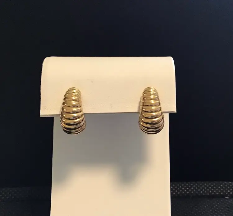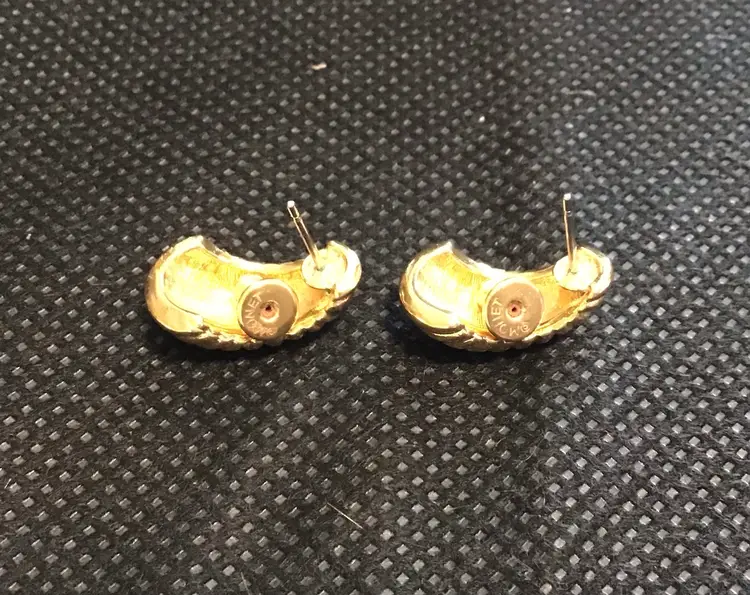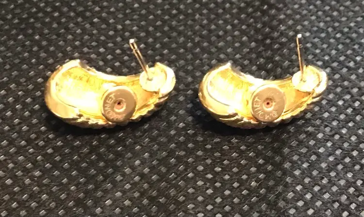 Gold tone rubbed dome half hoop post. Marked on earrings & earring backs also. #562