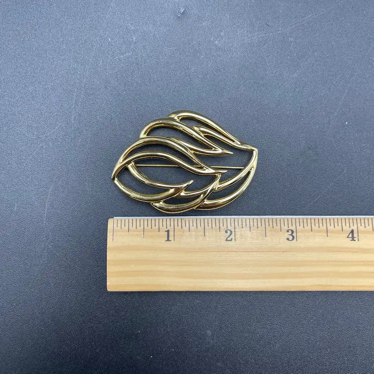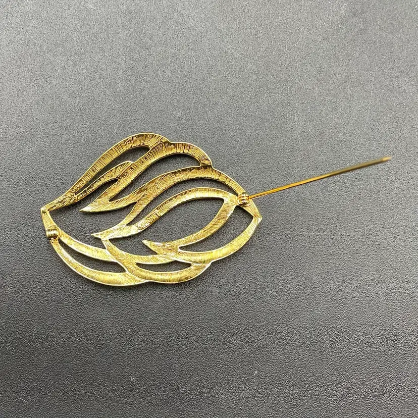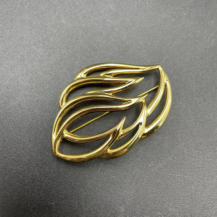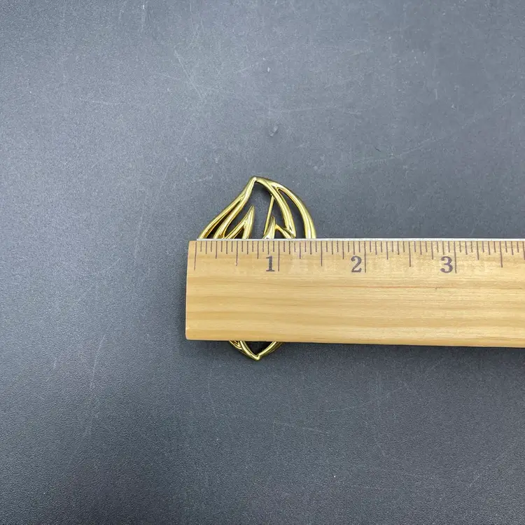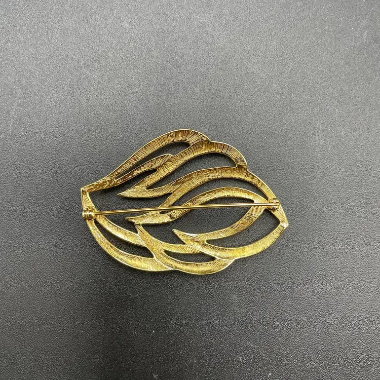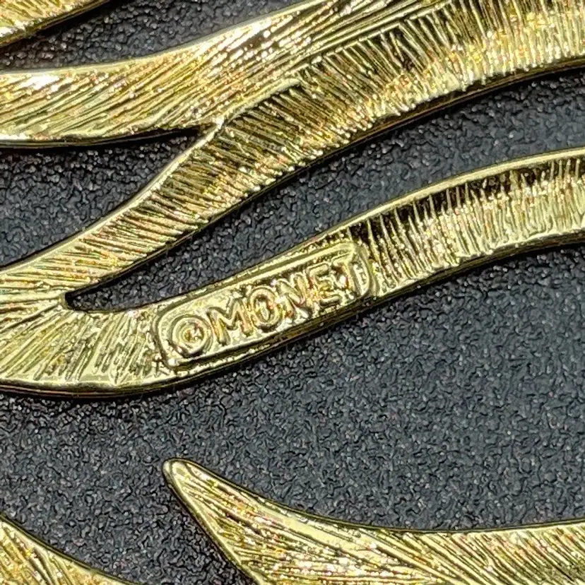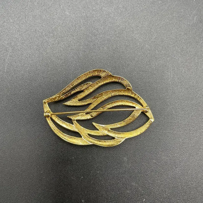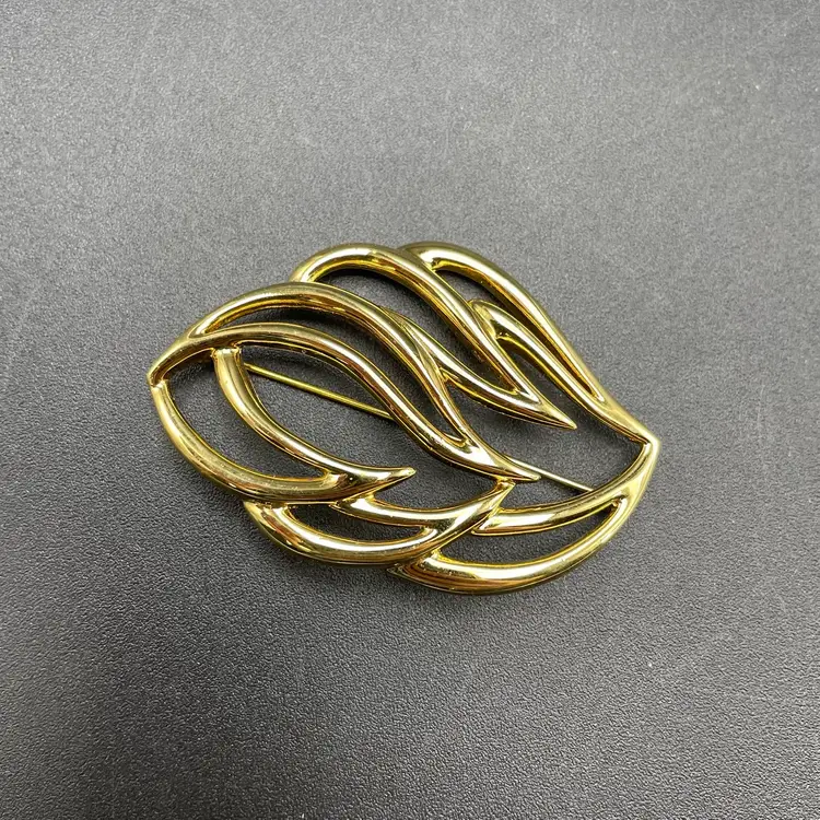 This is a vintage Monet gold tone leaf brooch. Monet is stamped on the back. Measures approximately 2.5” long x 1.5" wide. No flaws.