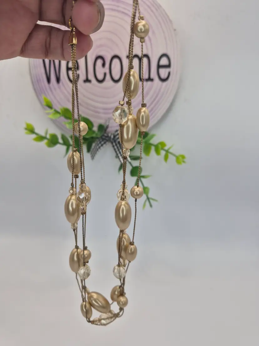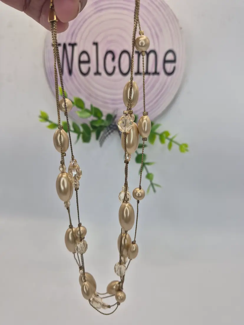 Monet Goldtone Beaded Multi Strand Necklace 16" 2" extender