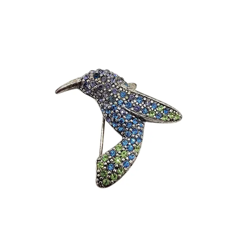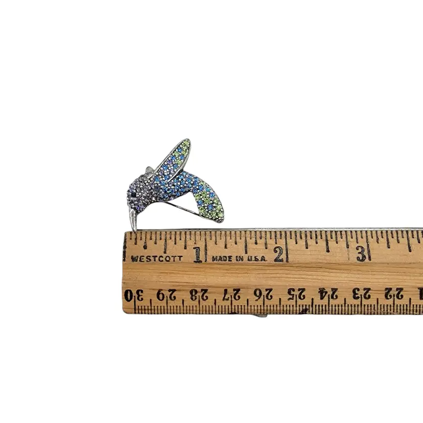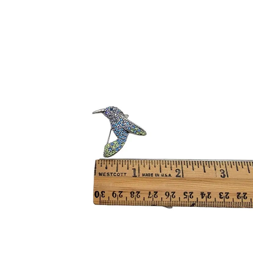 Beautiful spring style hummingbird brooch. Condition: no missing stones, excellent condition. Measurements approximately: 1.25" x 1.25"